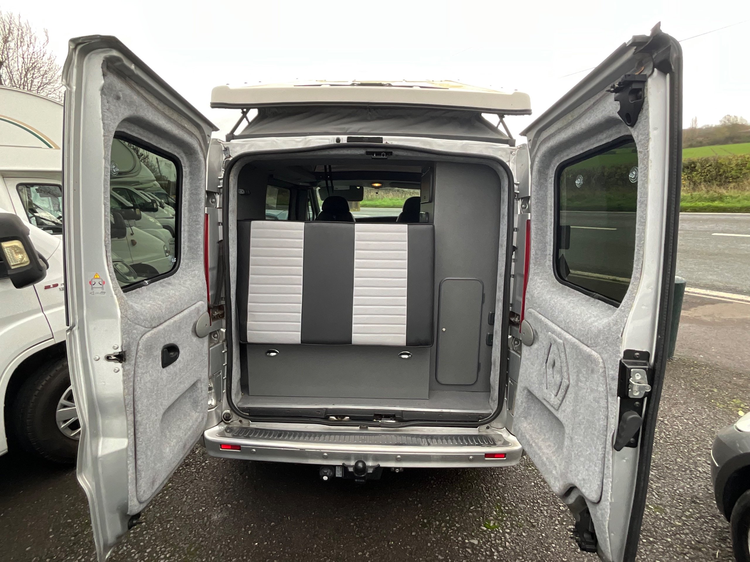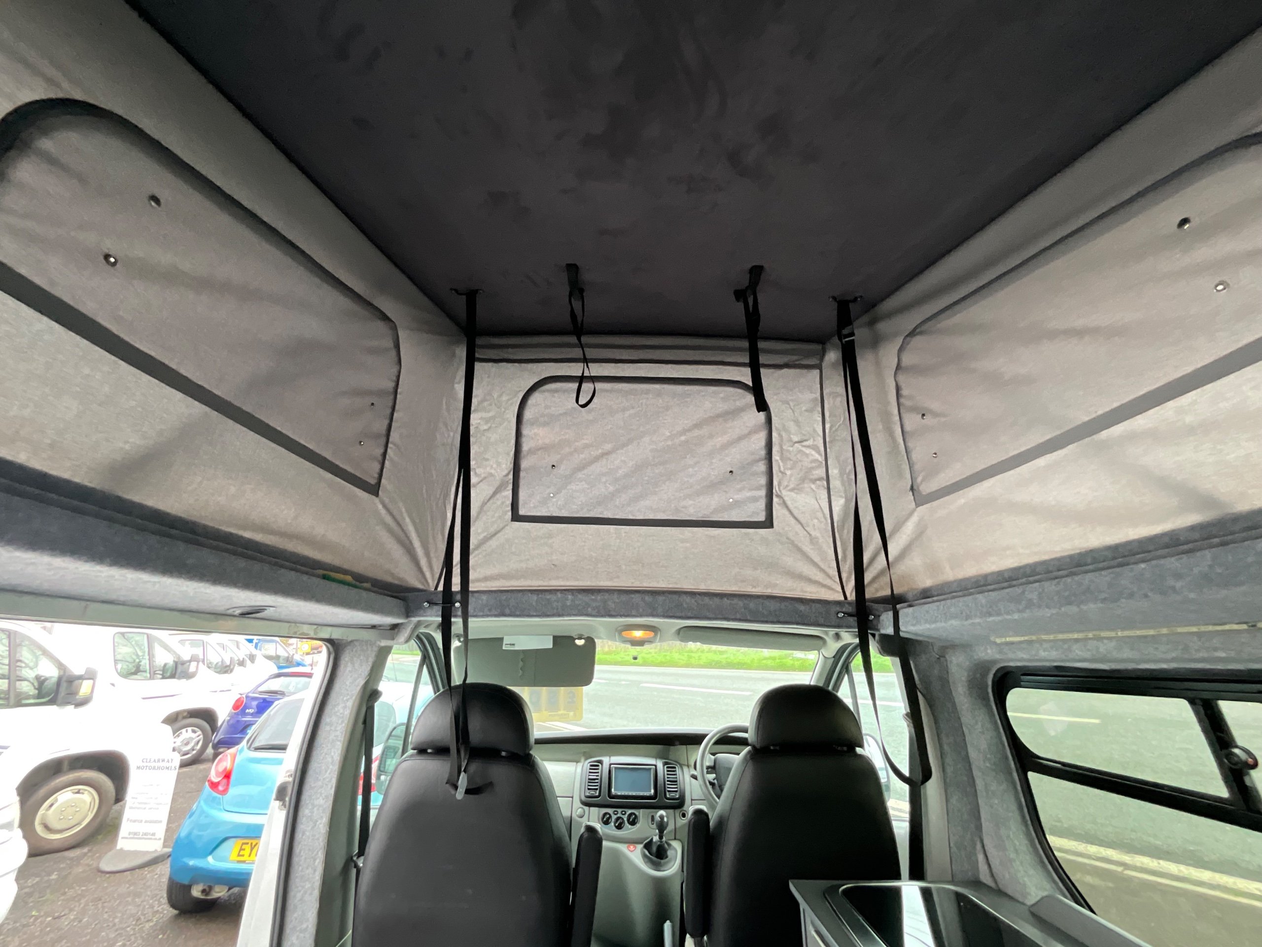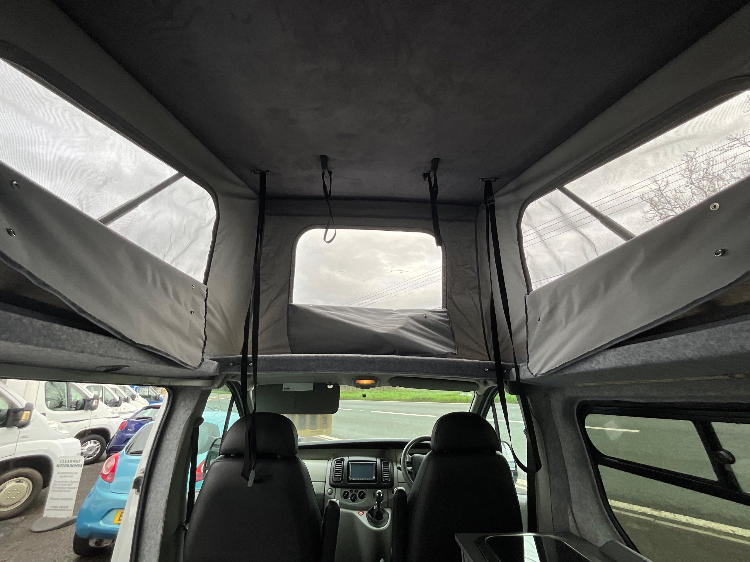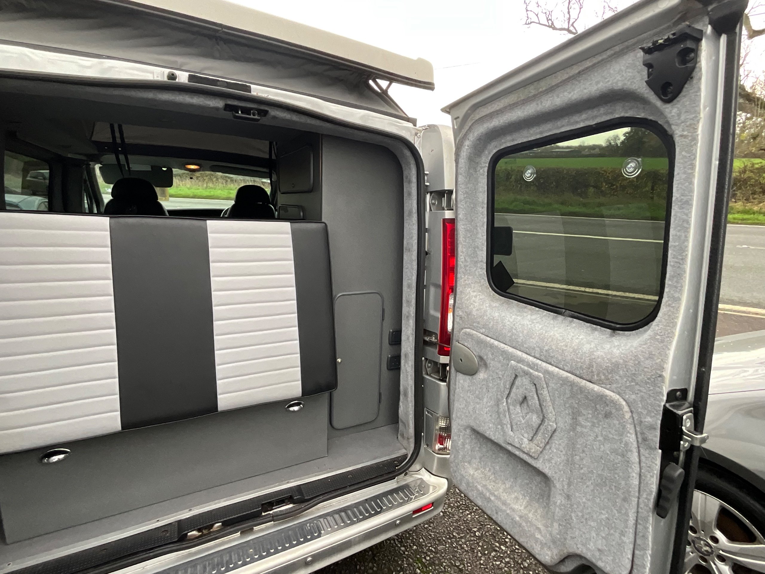 2009 Renault Traffic camper-van offers everything from comfort, practicality. It has been fully converted with grey interior fabric, grey units, fabric lined walls with grey non slip flooring. There is also interior light fittings. The Renault has been fitted with a hi-lo roof with a coloured canvas and struts, three windows with insect proof netting for the sides and clear fabric at the front. This van is registered as a 4-seater and sleeps 4.