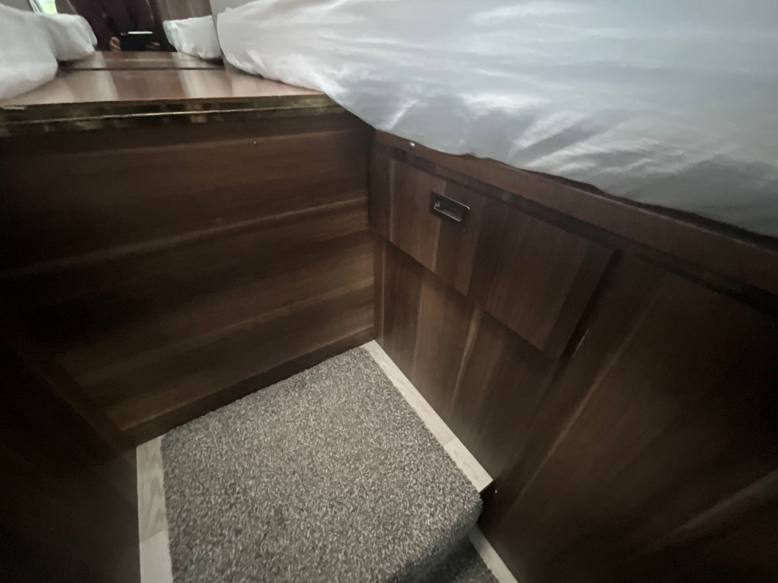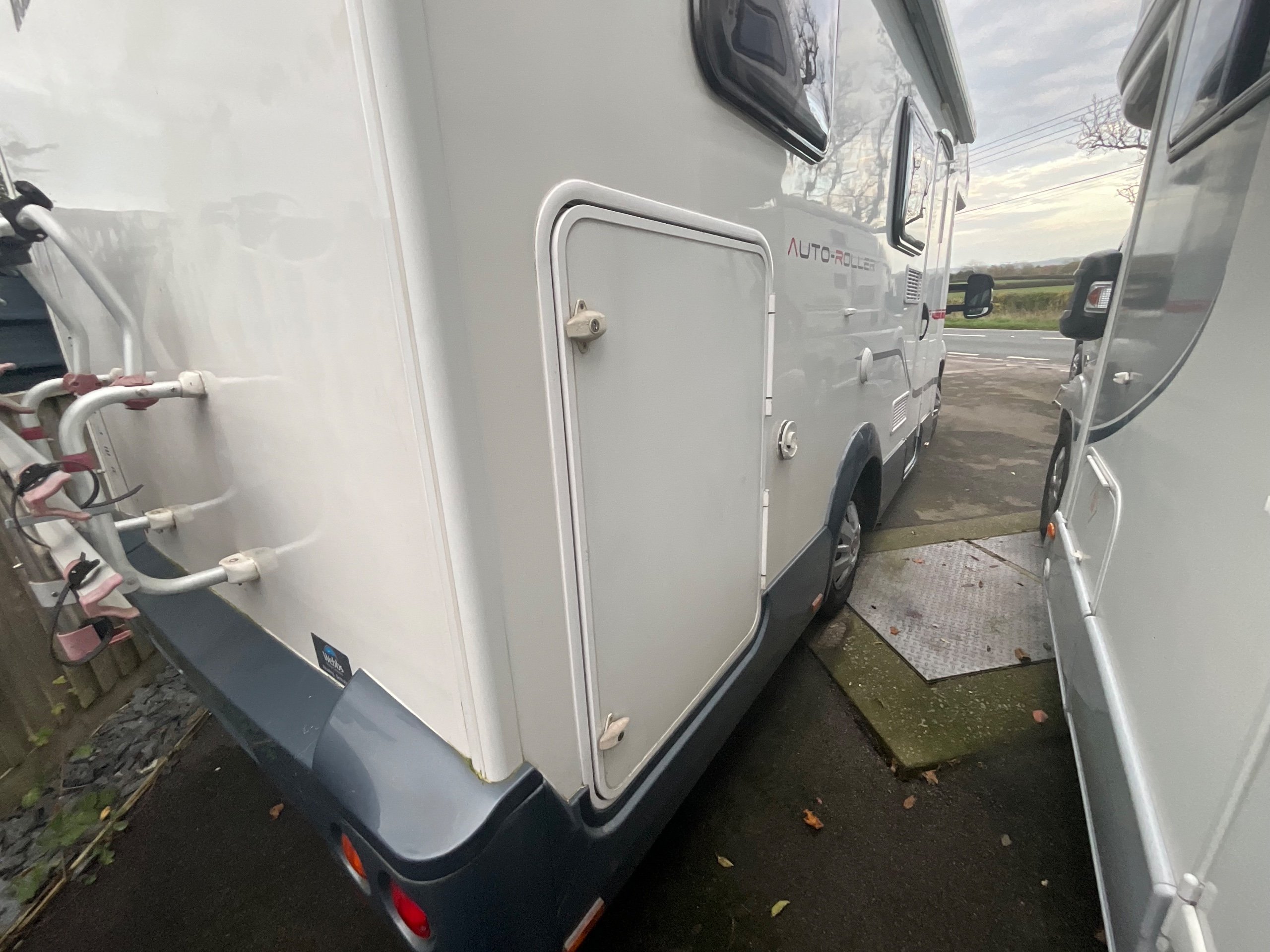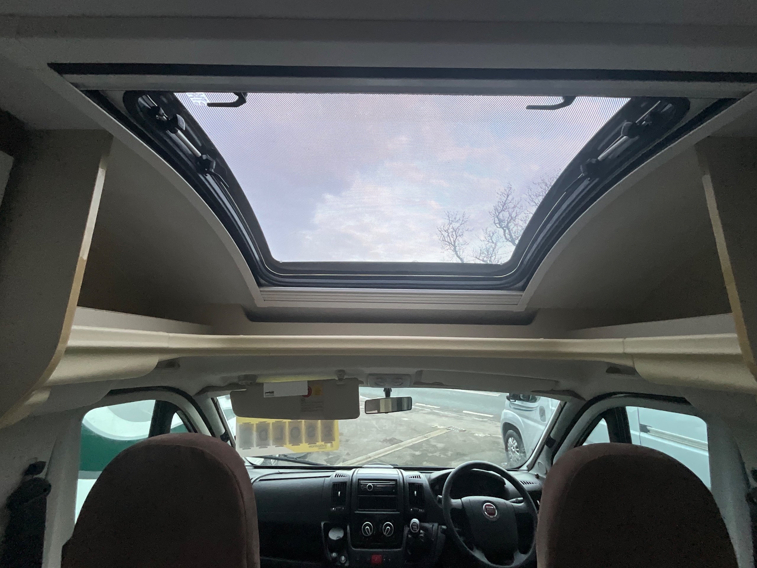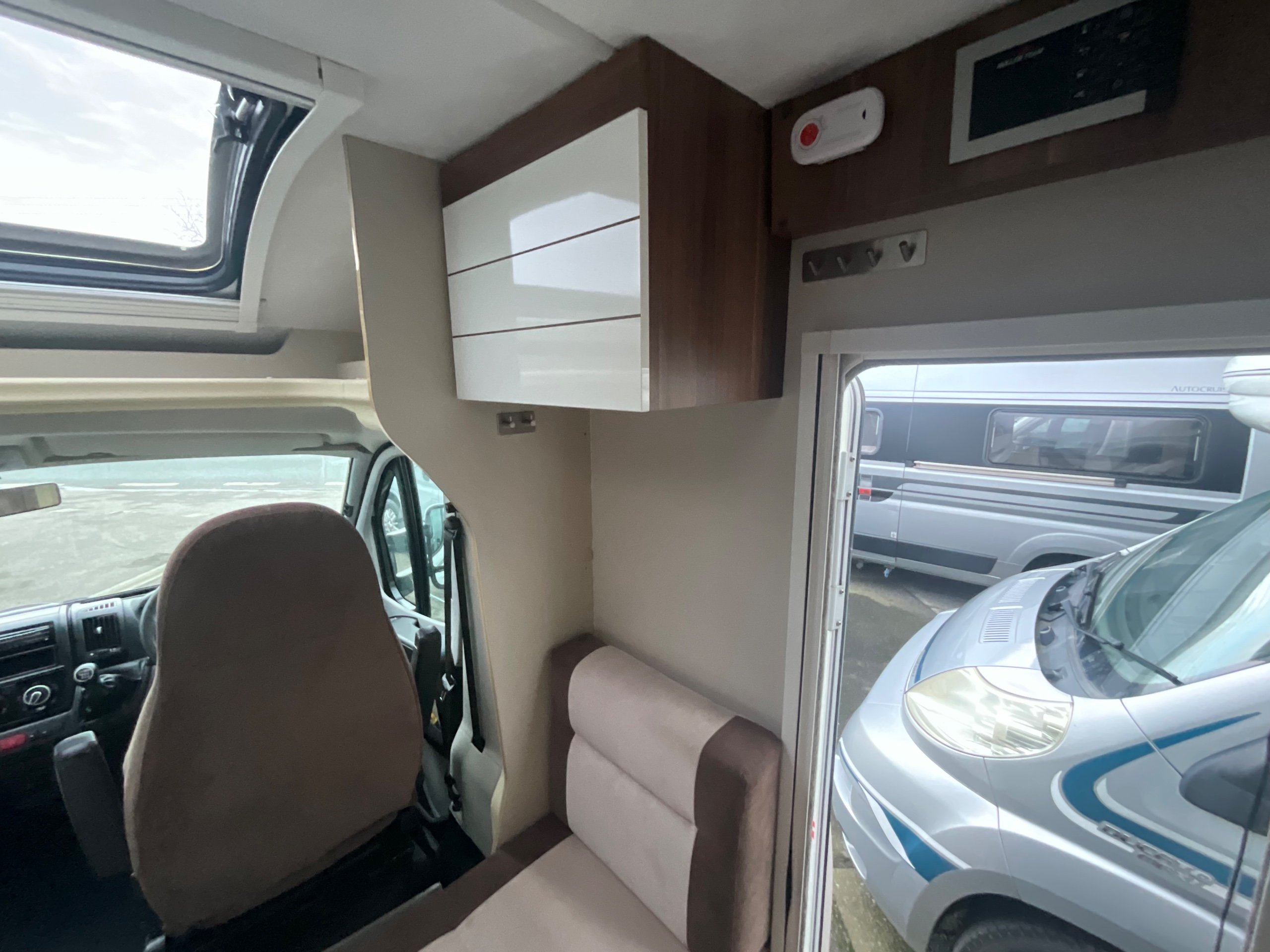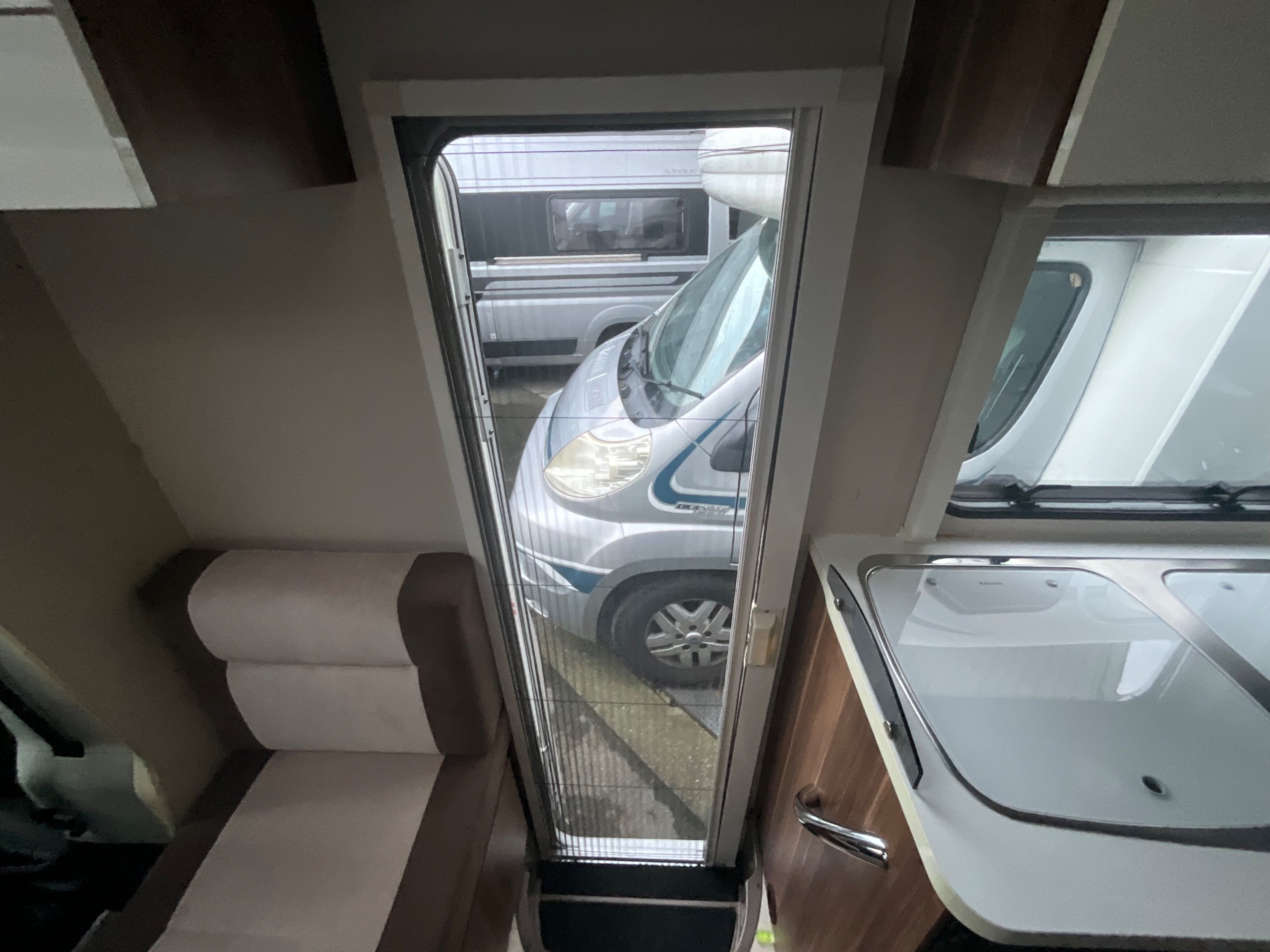 The Rollerteam 685 is a low profile, 4 Berth motorhome with Fixed Rear single Beds (which can form a double bed with the use of extensions and infill cushions) offering plenty of storage underneath the beds themselves, as well as a large garage storage underneath which can be accessed from outside with an external door on both sides. The central seating area offers many flexible options of two travelling seat belts so this Rollerteam can travel with 4 people fully belted in. This can also be a Dinette seating area with the seats (which is where the 2 seat belts are) as well as the small bench seat opposite to use for dinning when parked up with the table having sliding mechanisms to allow it to move when needed. This area can be enhanced further with both front seats having swivelling mechanisms to enlarge the seating area for dinning. Above the cab area is extra storage.