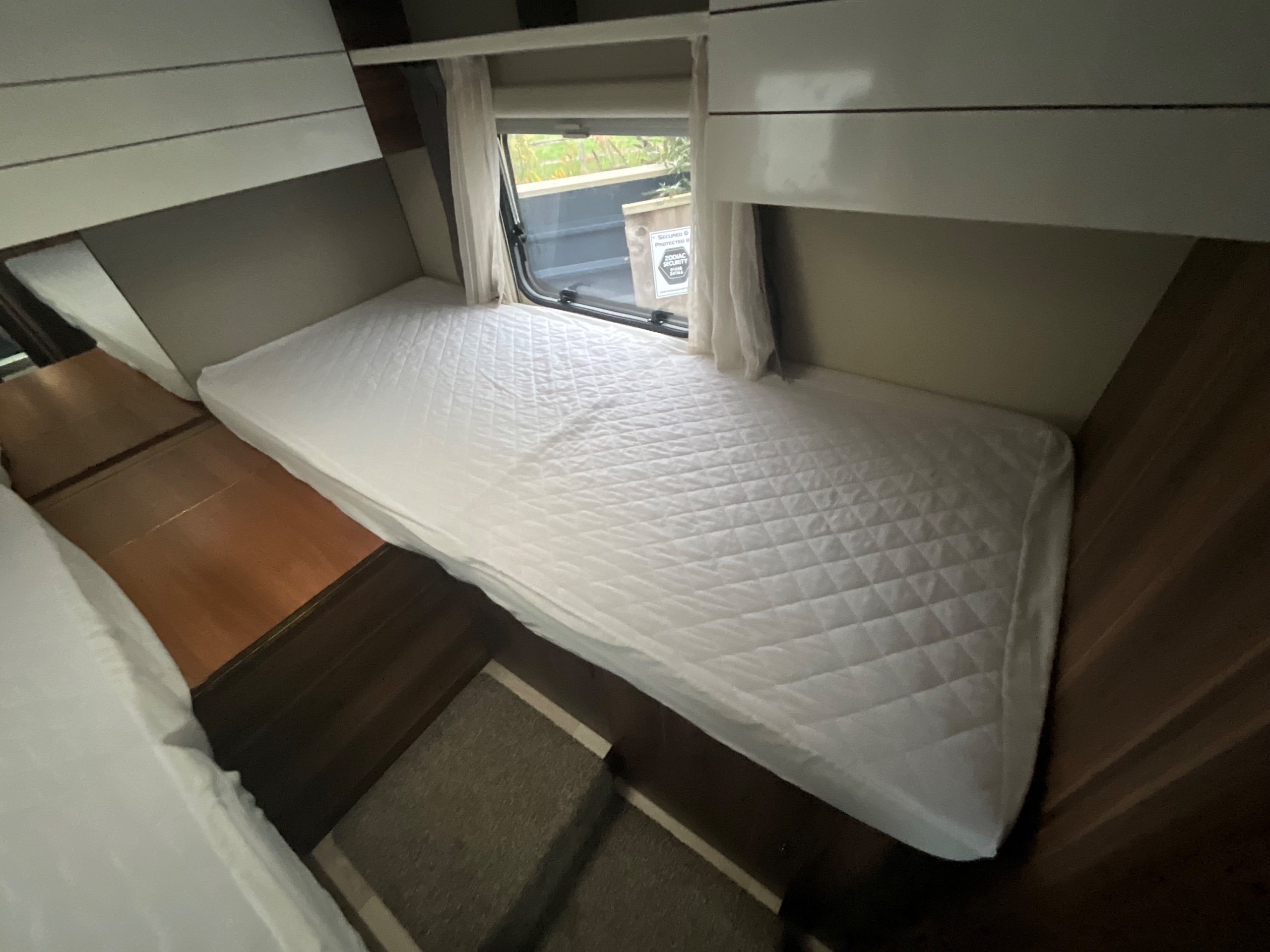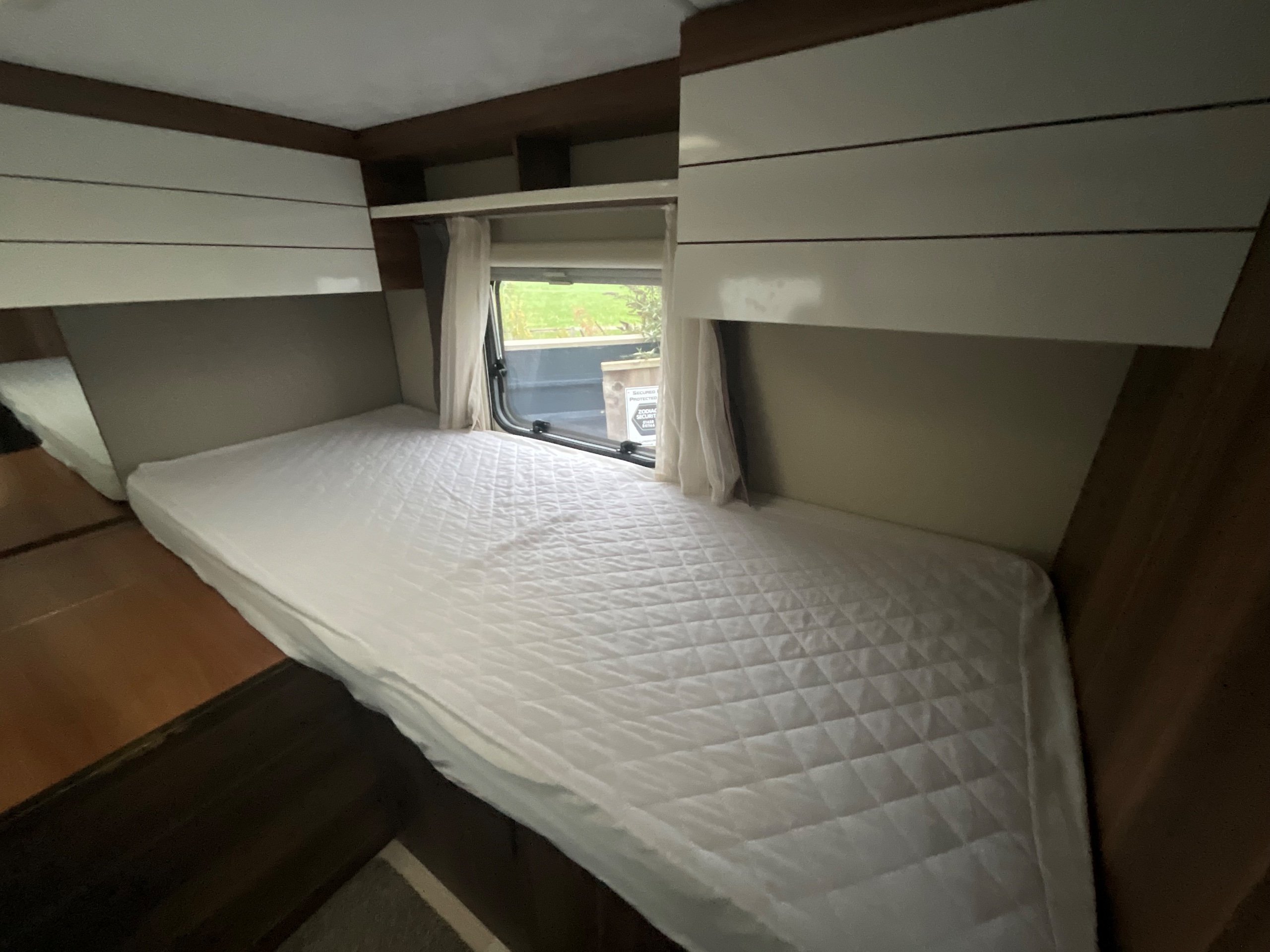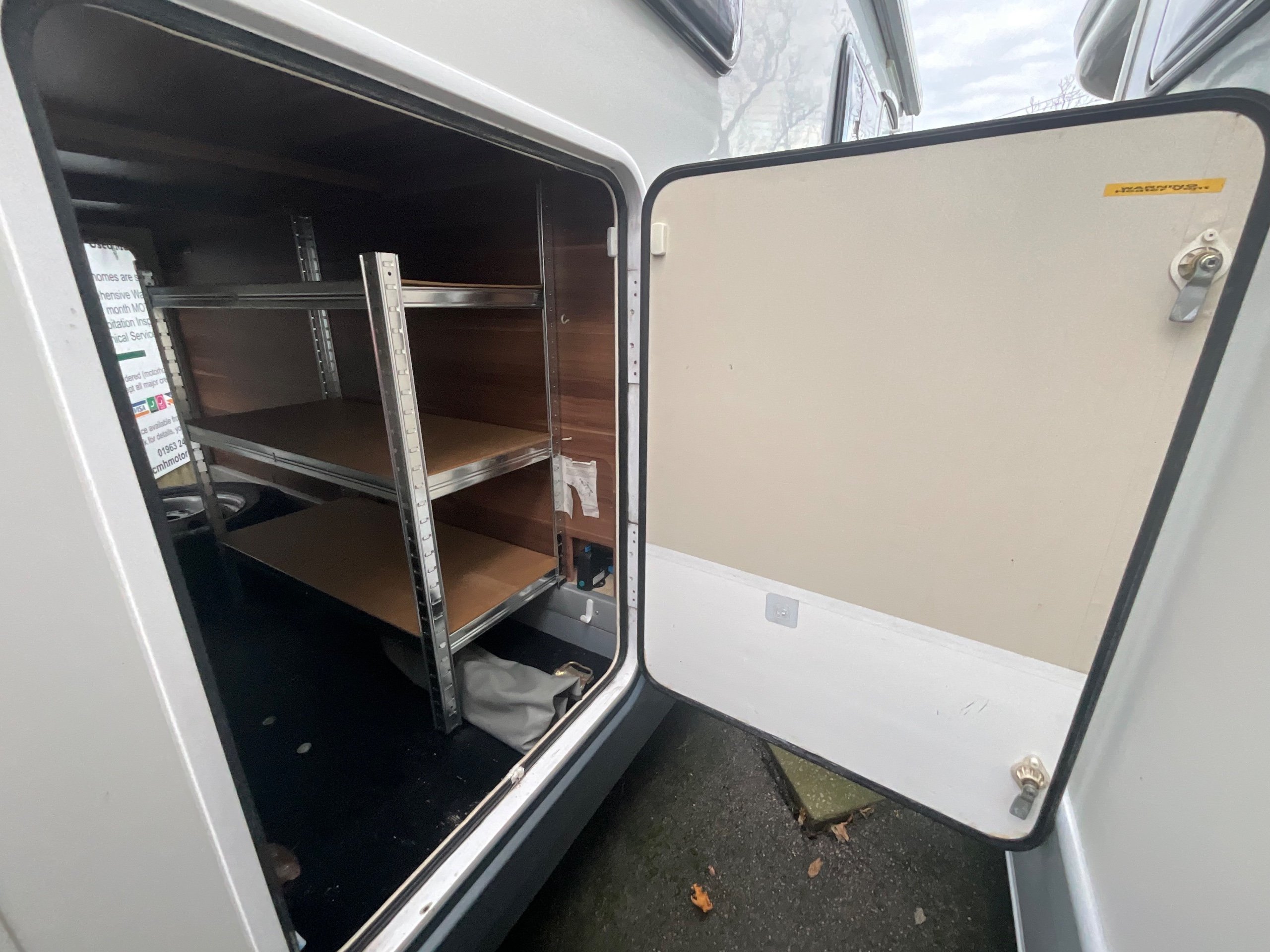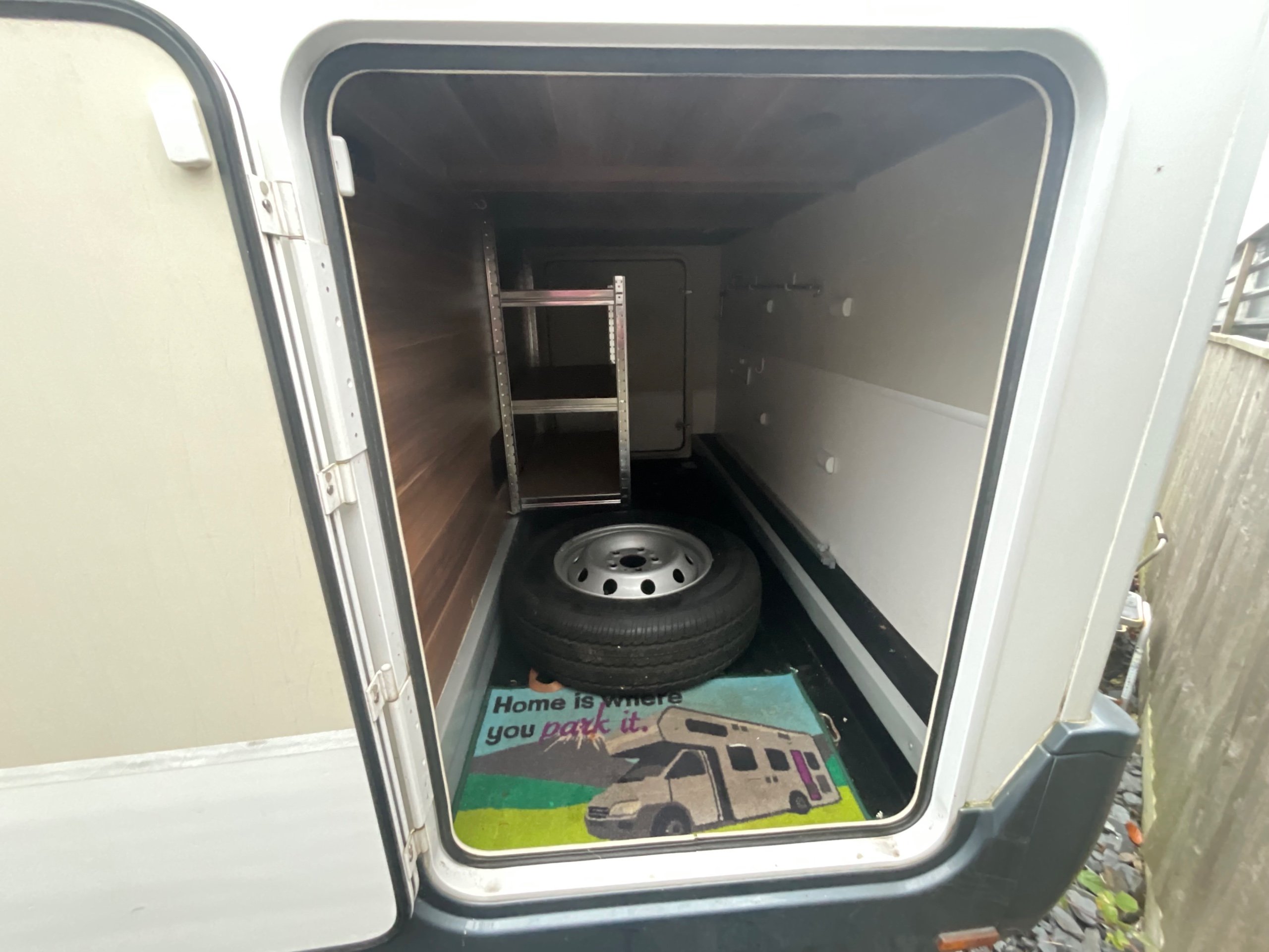 Onboard there is Fresh and wastewater tanks, Gas operated heating and Gas hot water via the well renowned Truma heating / hot water system. On the outside there is a garage storage area, which has plenty of storage for anything.