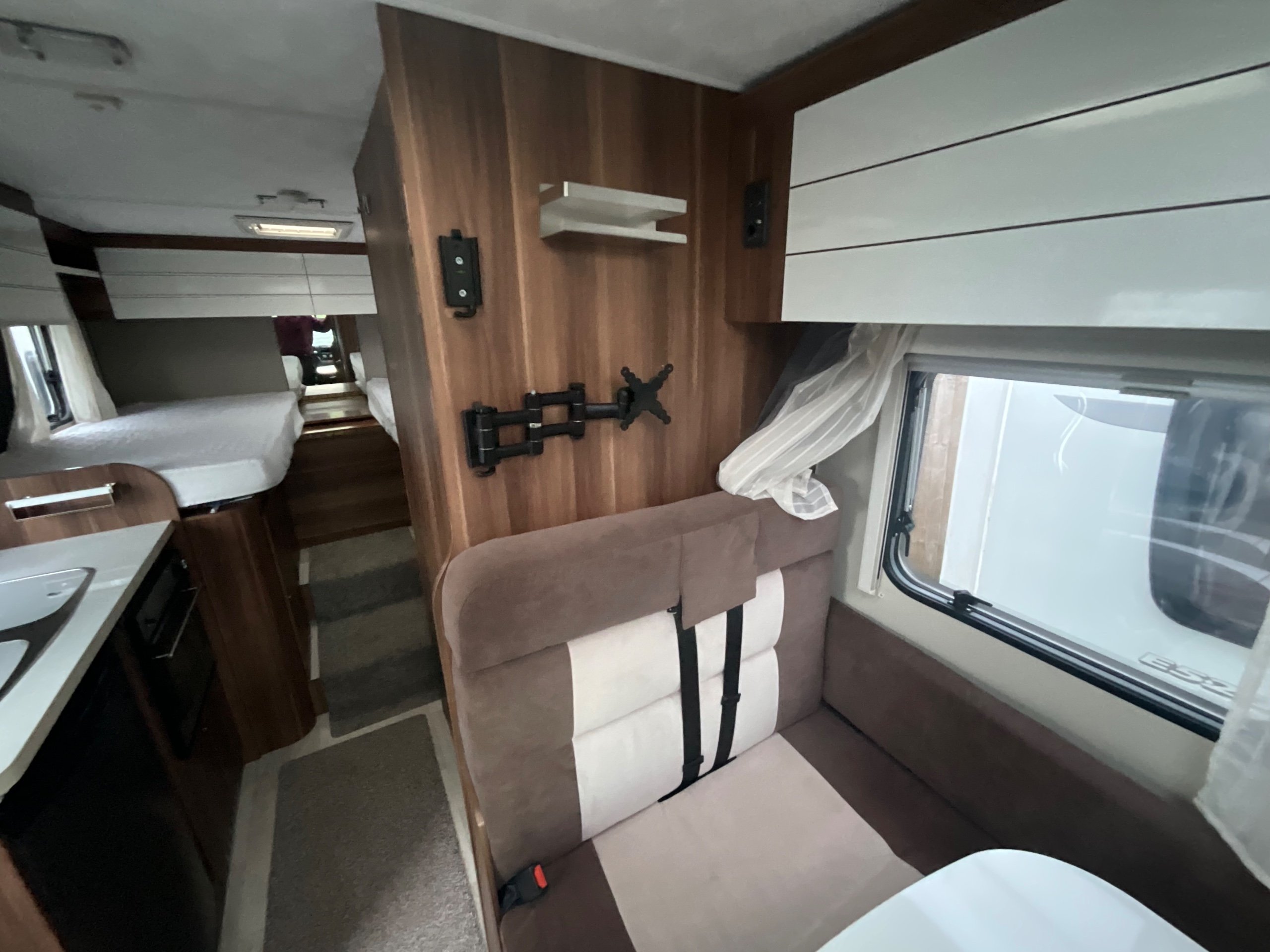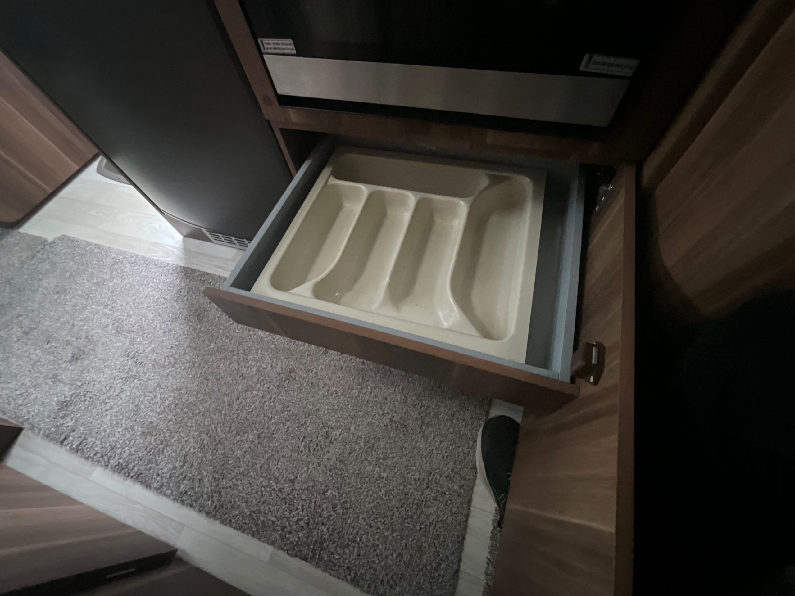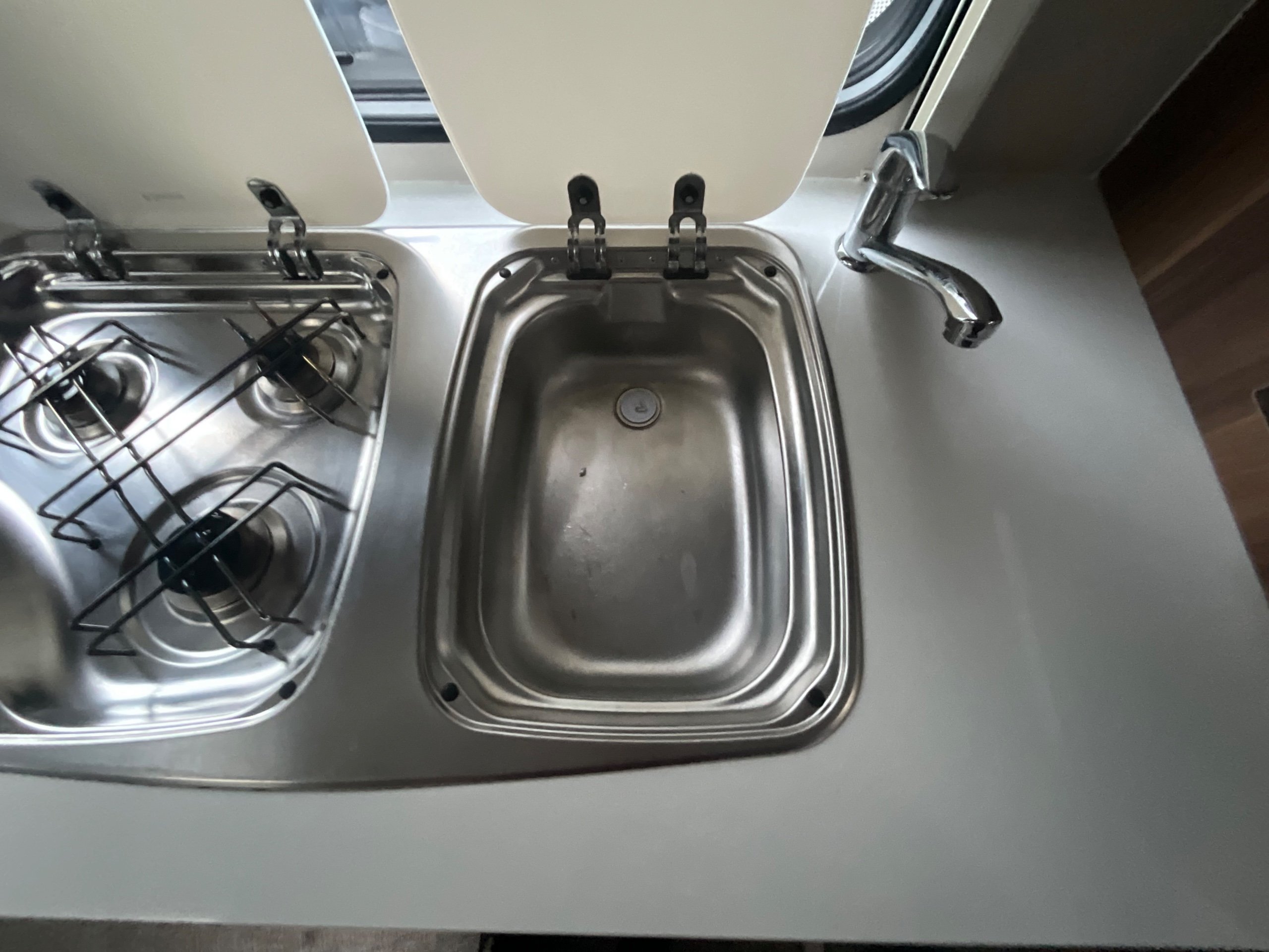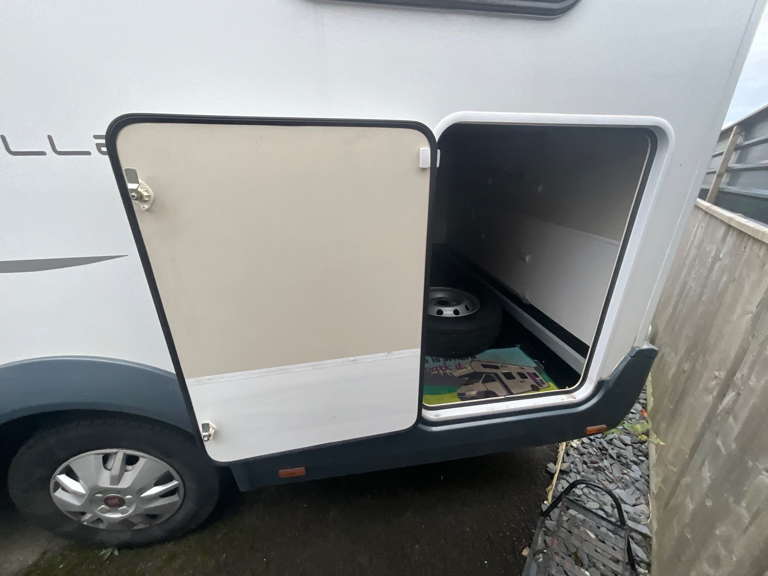 Onboard there is Fresh and wastewater tanks, Gas operated heating and Gas hot water via the well renowned Truma heating / hot water system. On the outside there is a garage storage area, which has plenty of storage for anything.