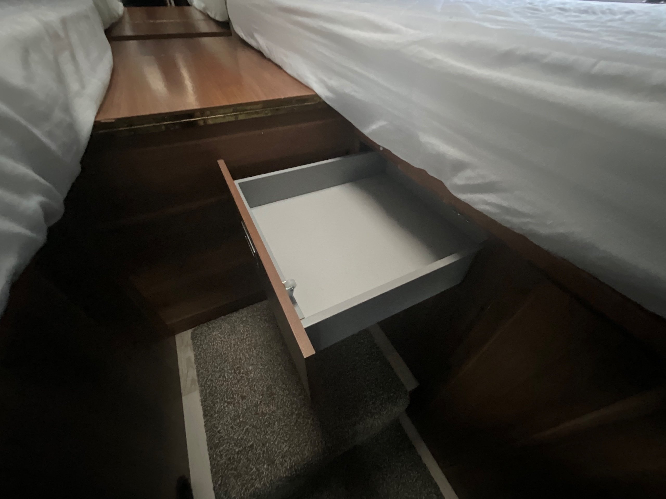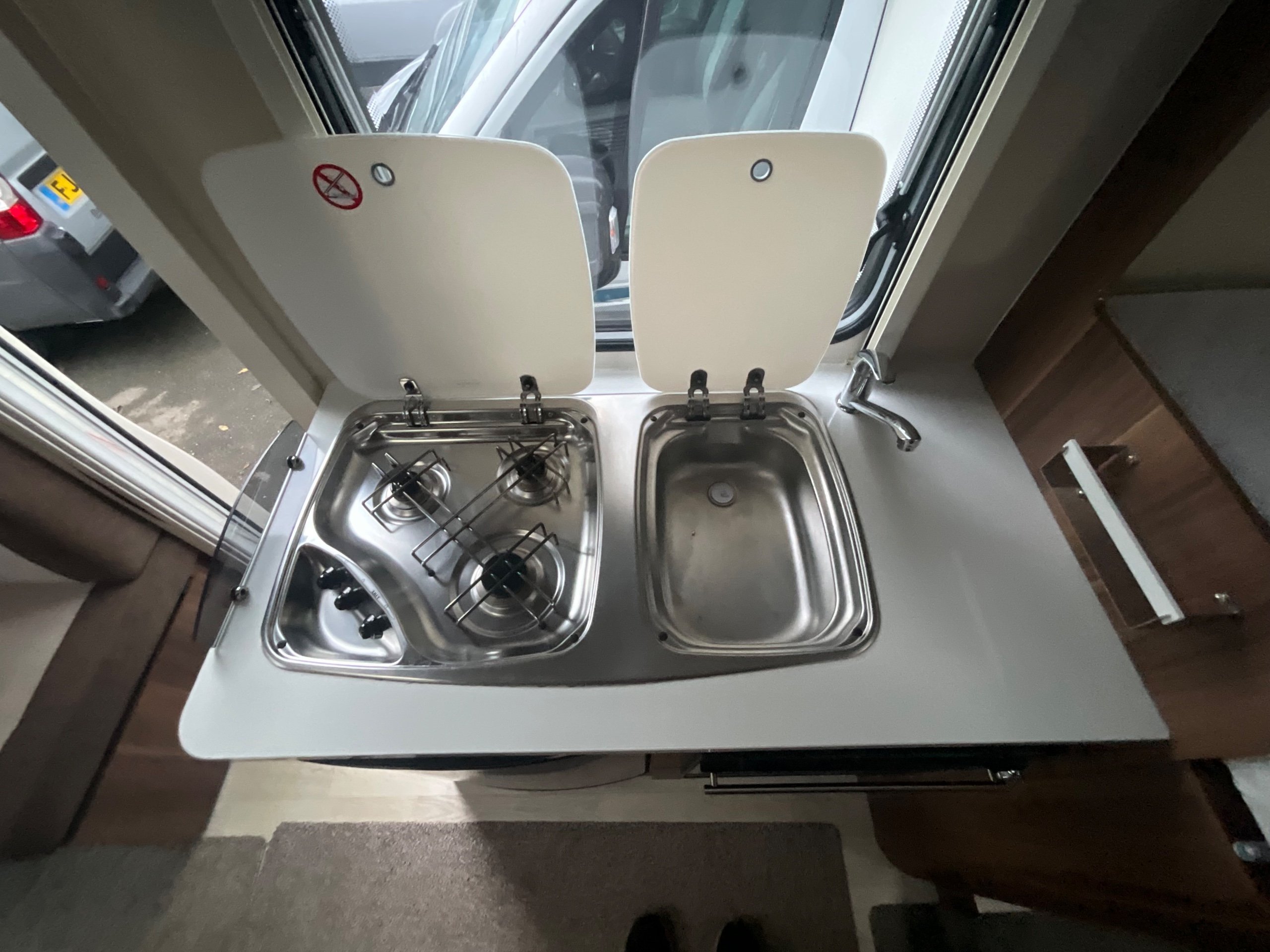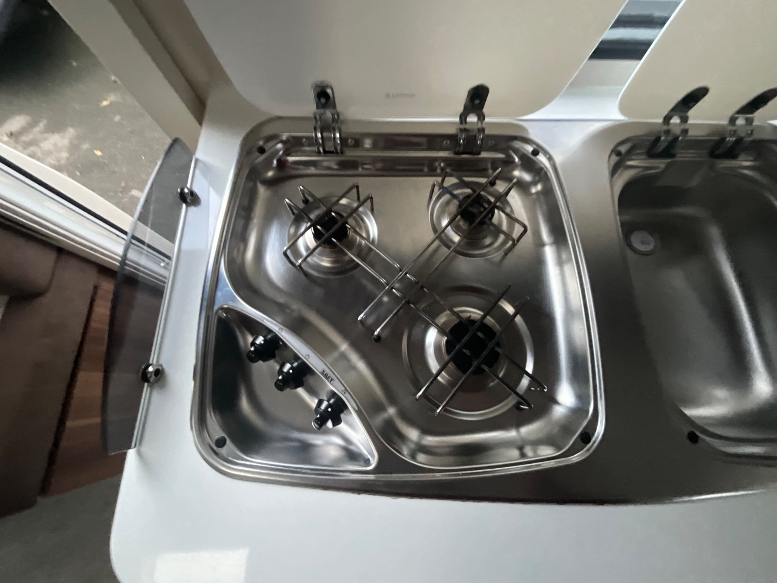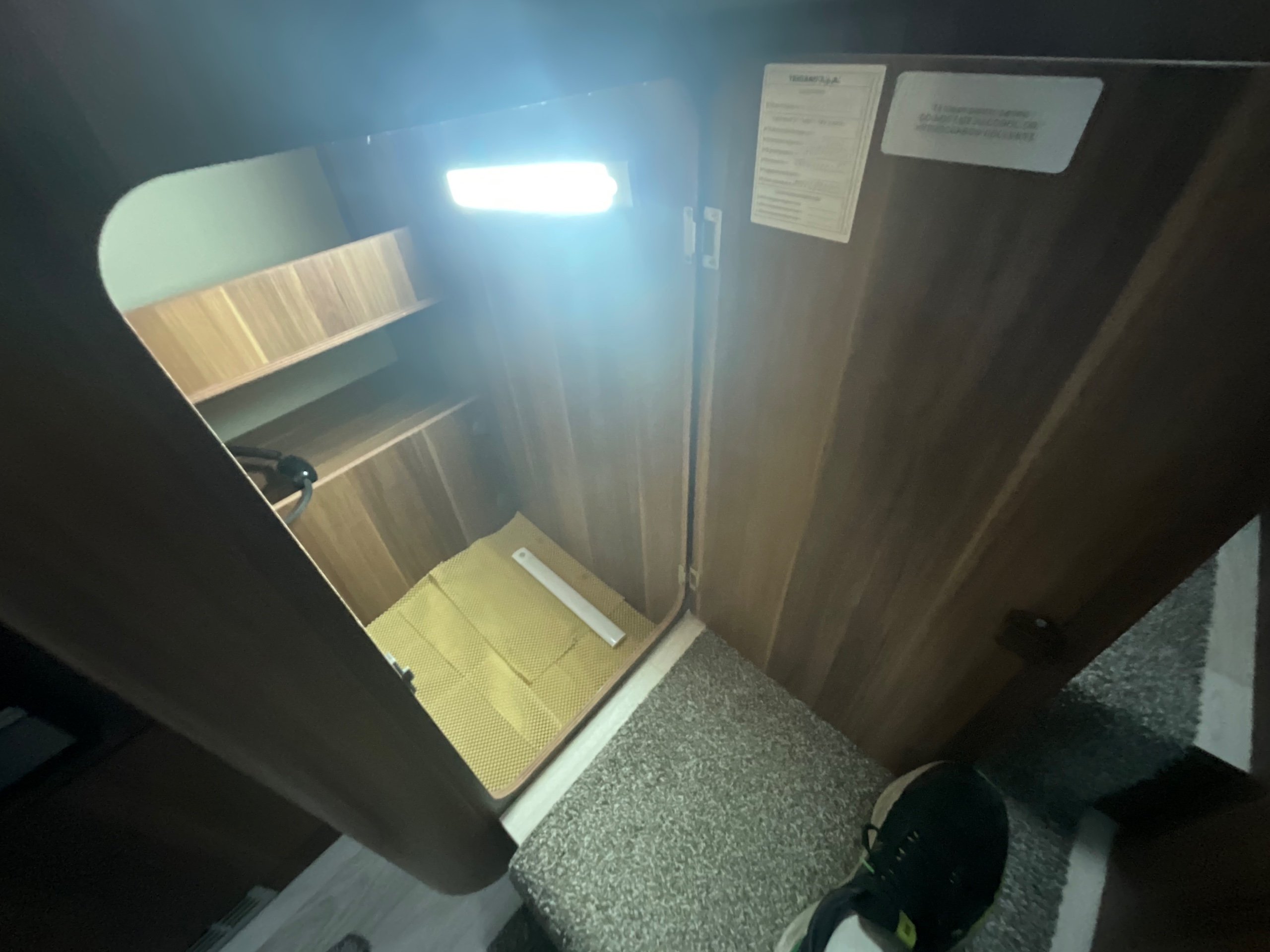 Onboard there is Fresh and wastewater tanks, Gas operated heating and Gas hot water via the well renowned Truma heating / hot water system. On the outside there is a garage storage area, which has plenty of storage for anything.