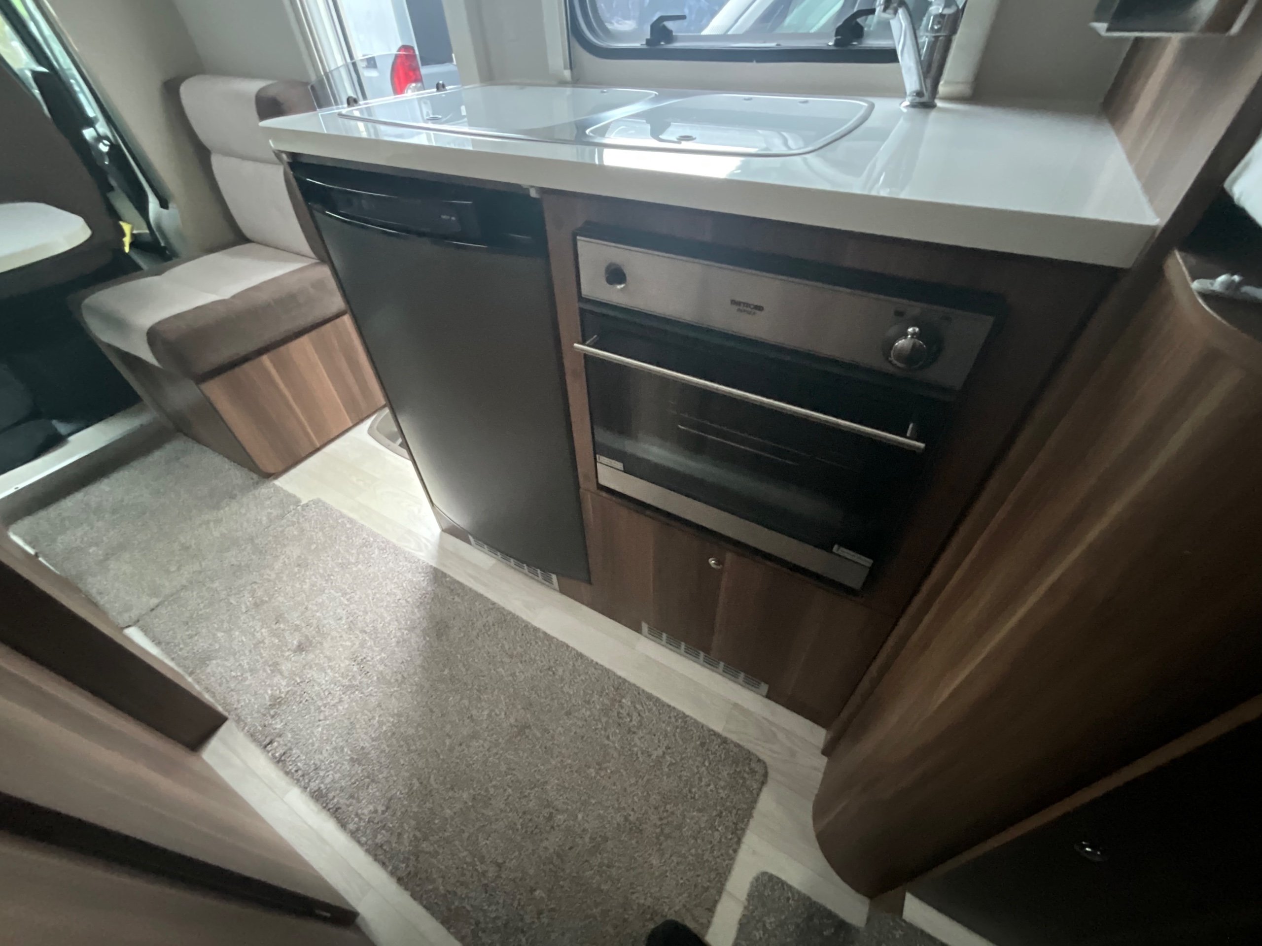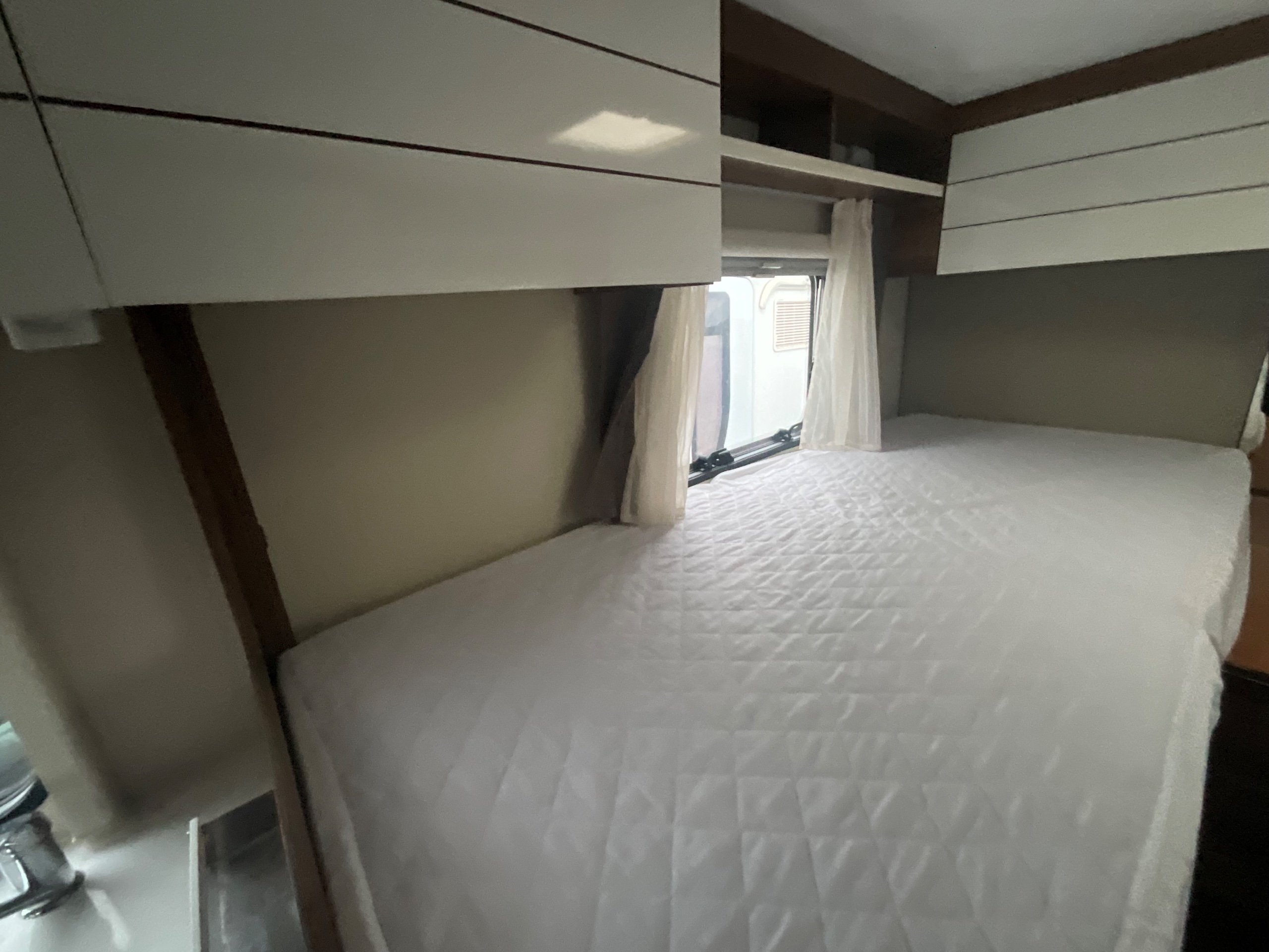 Rollerteam is a beautifully constructed and exceptionally insulated Motorhome in construction. The light-coloured wood and neutral furnishings lend itself to a modern feel of space and openness. All the comforts that you would expect from a central kitchen with 3 Gas Hobs, Gas Grill & Oven, 3-way Fridge with freezer compartment, and a sink. The bathroom is also in the central area which is complete with a toilet, separate shower cubicle and a sink. With plenty of storage in this area with cupboards and wardrobes situated in the central area.