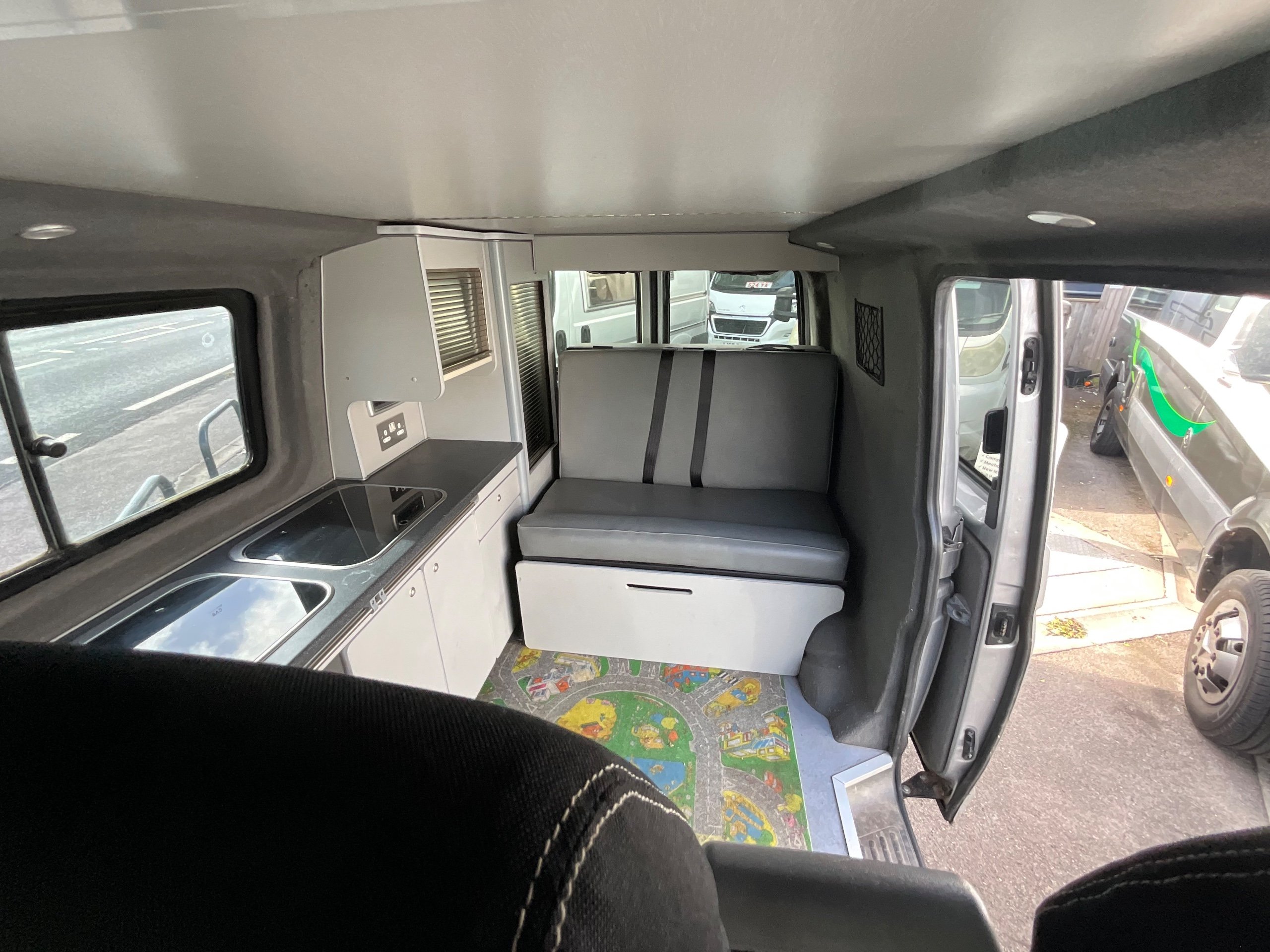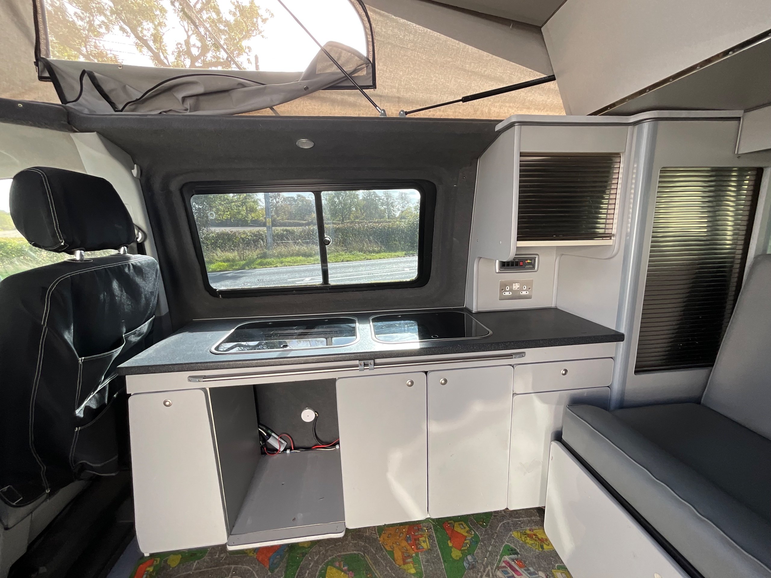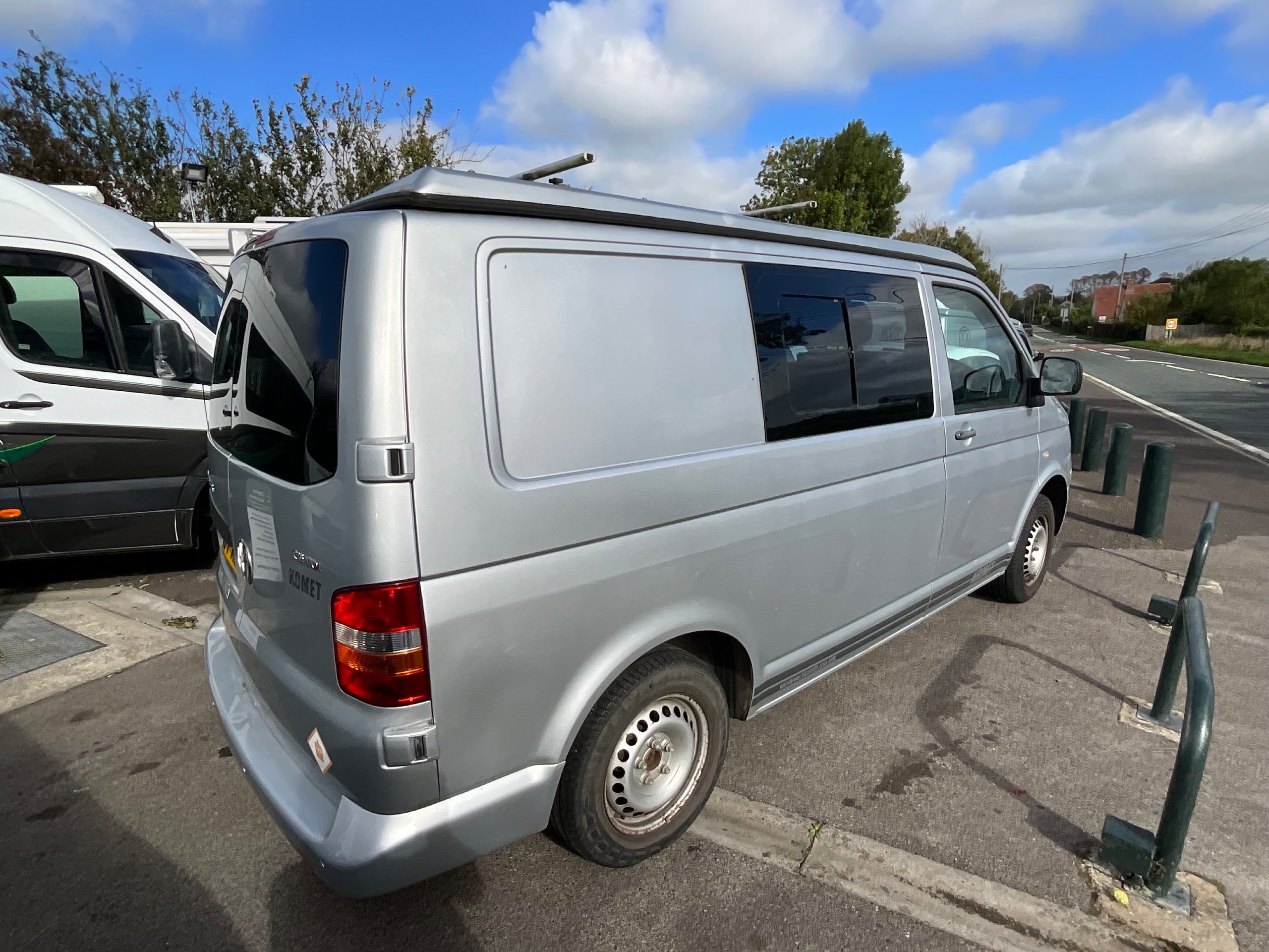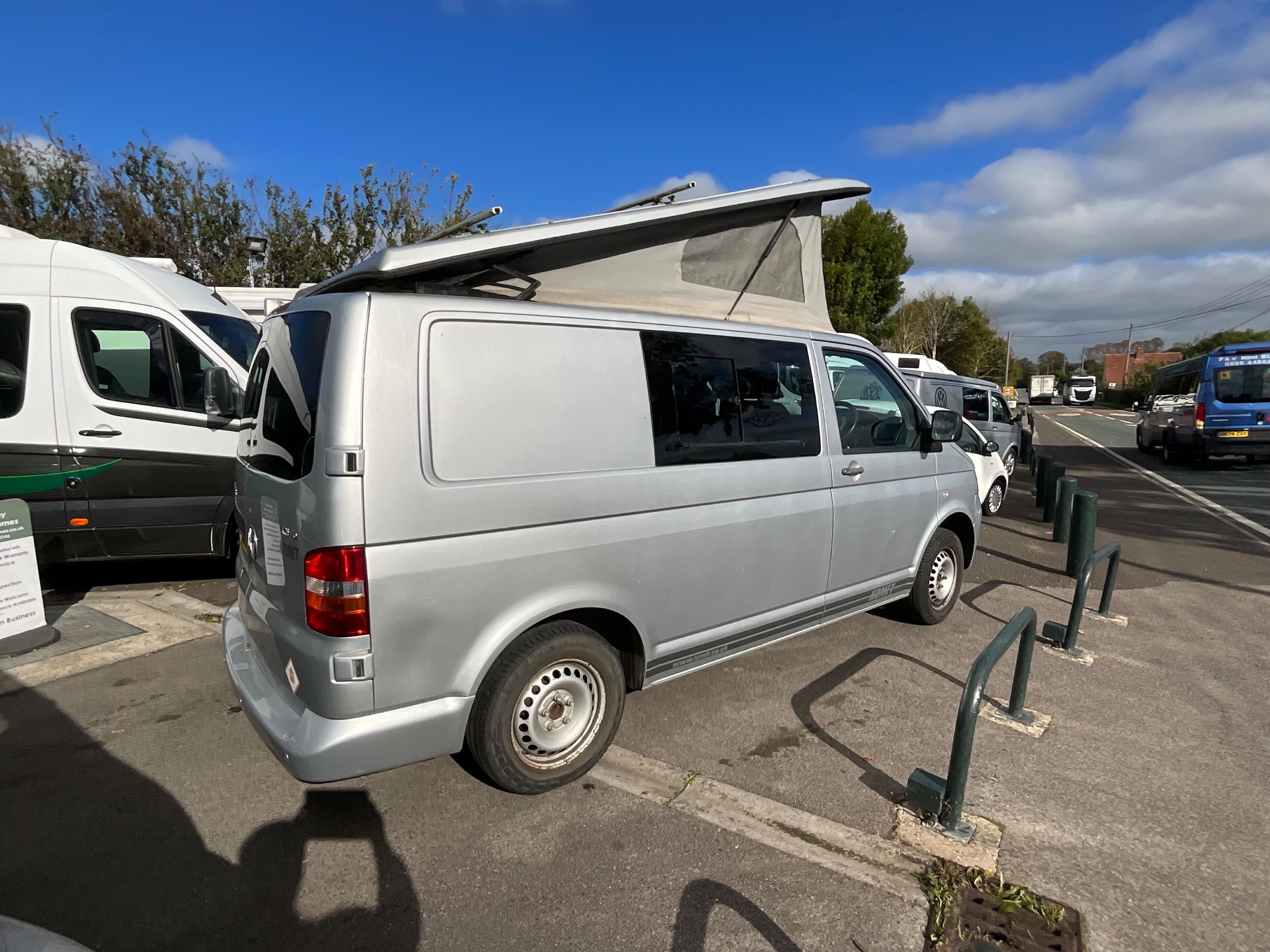 2007 VW campervan offers everything from comfort, practicality. It has been fully converted with grey interior fabric, grey units, fabric lined walls with grey non slip flooring. There is also interior light fittings. The VW has been fitted with a hi-lo roof with a coloured canvas and struts, three windows with insect proof netting for the sides and clear fabric at the front. This van is registered as a 5-seater and sleeps 4.