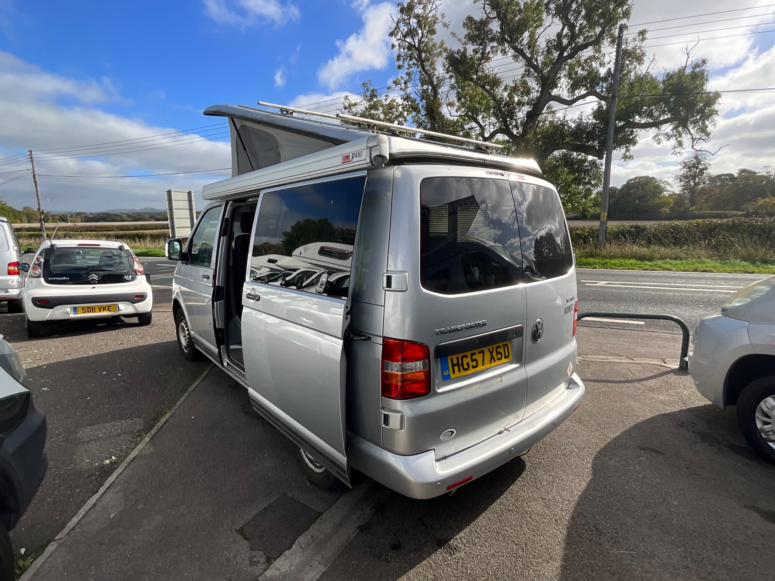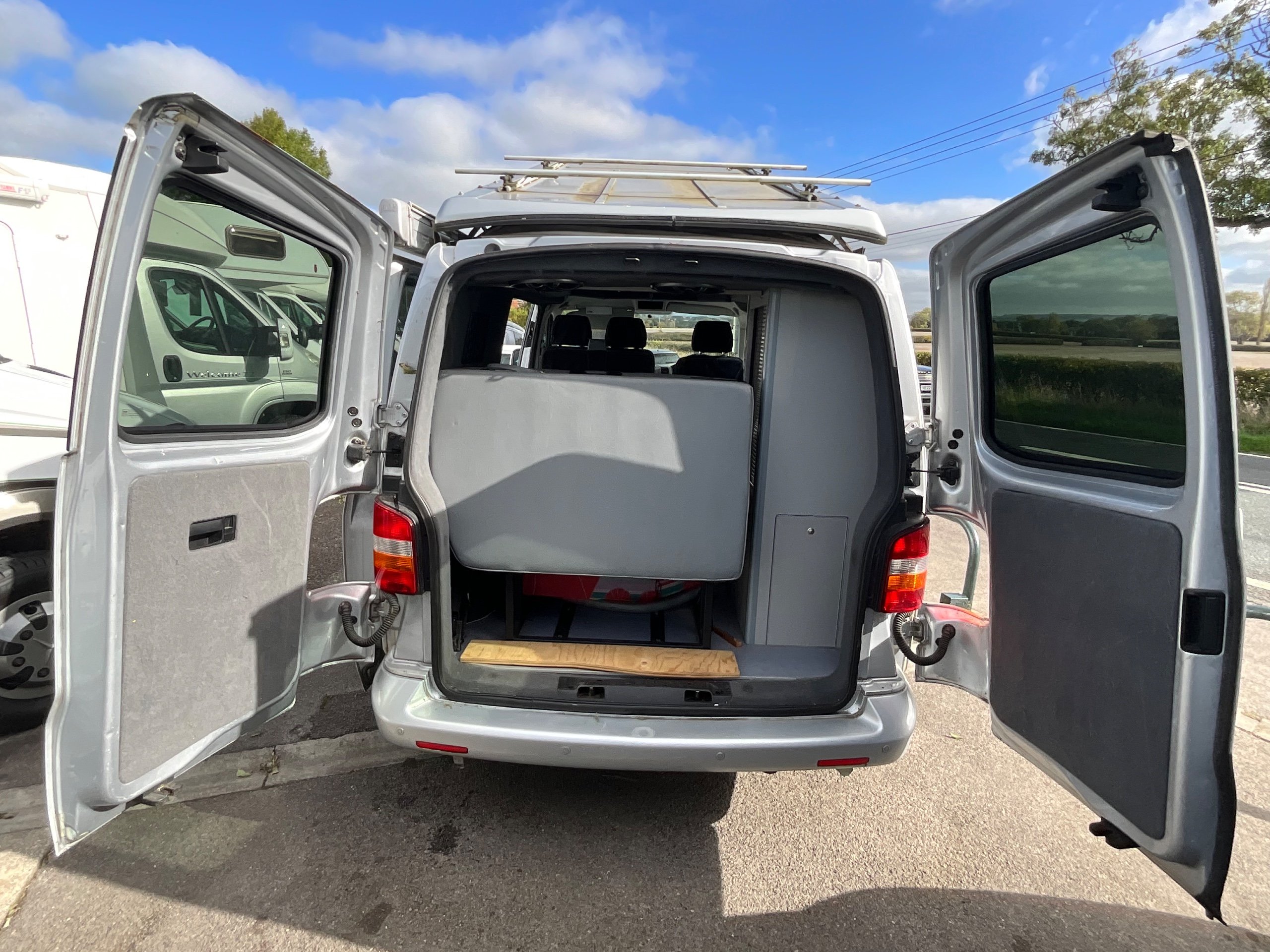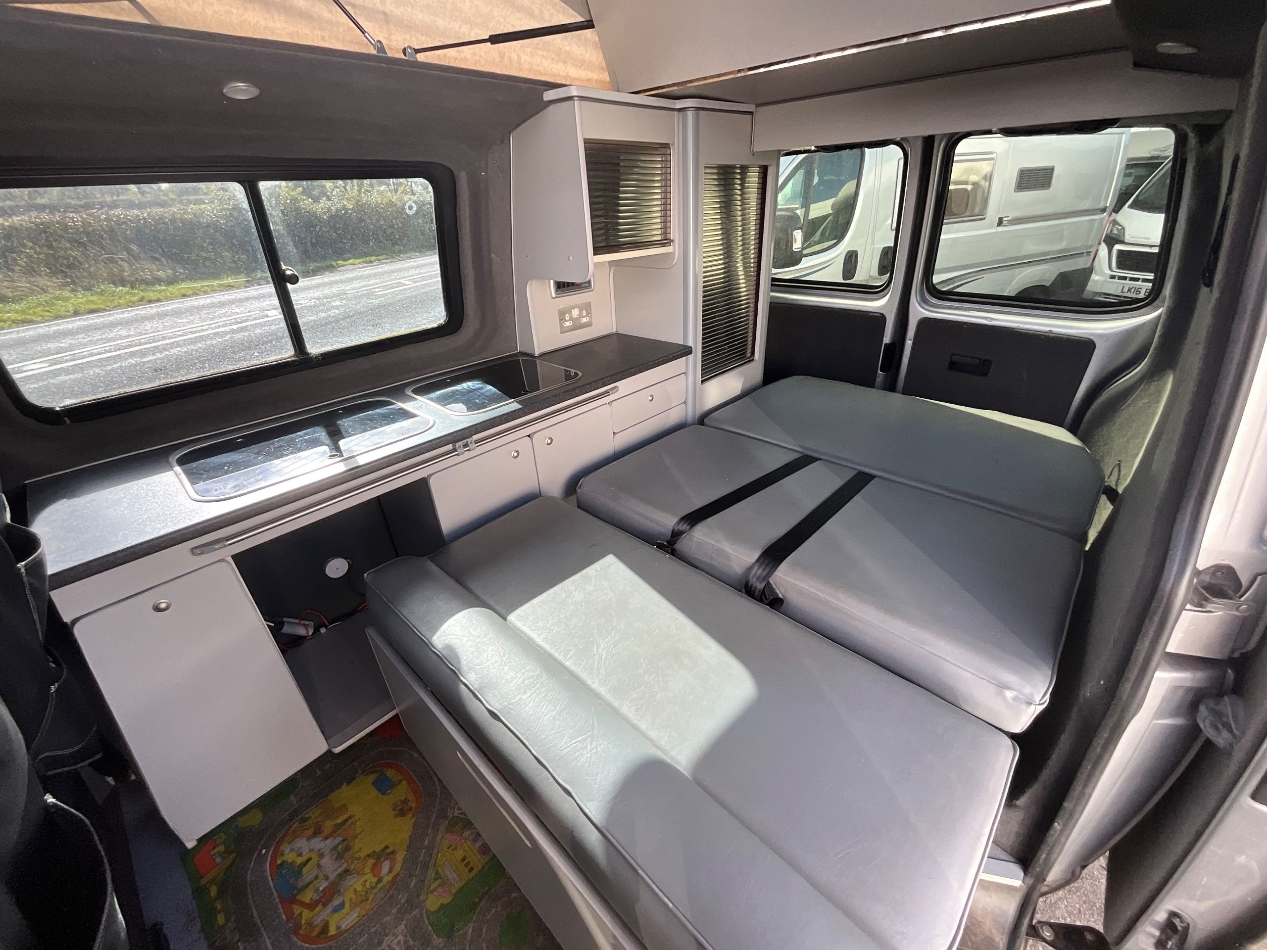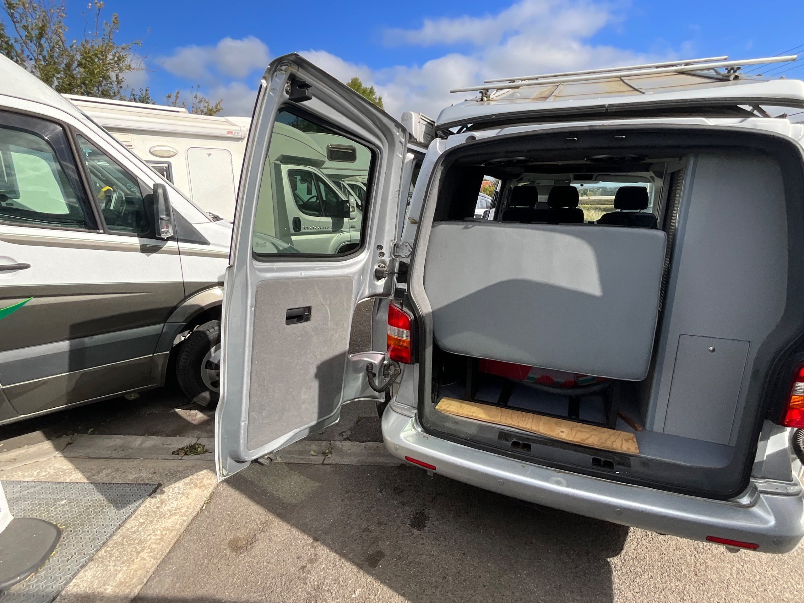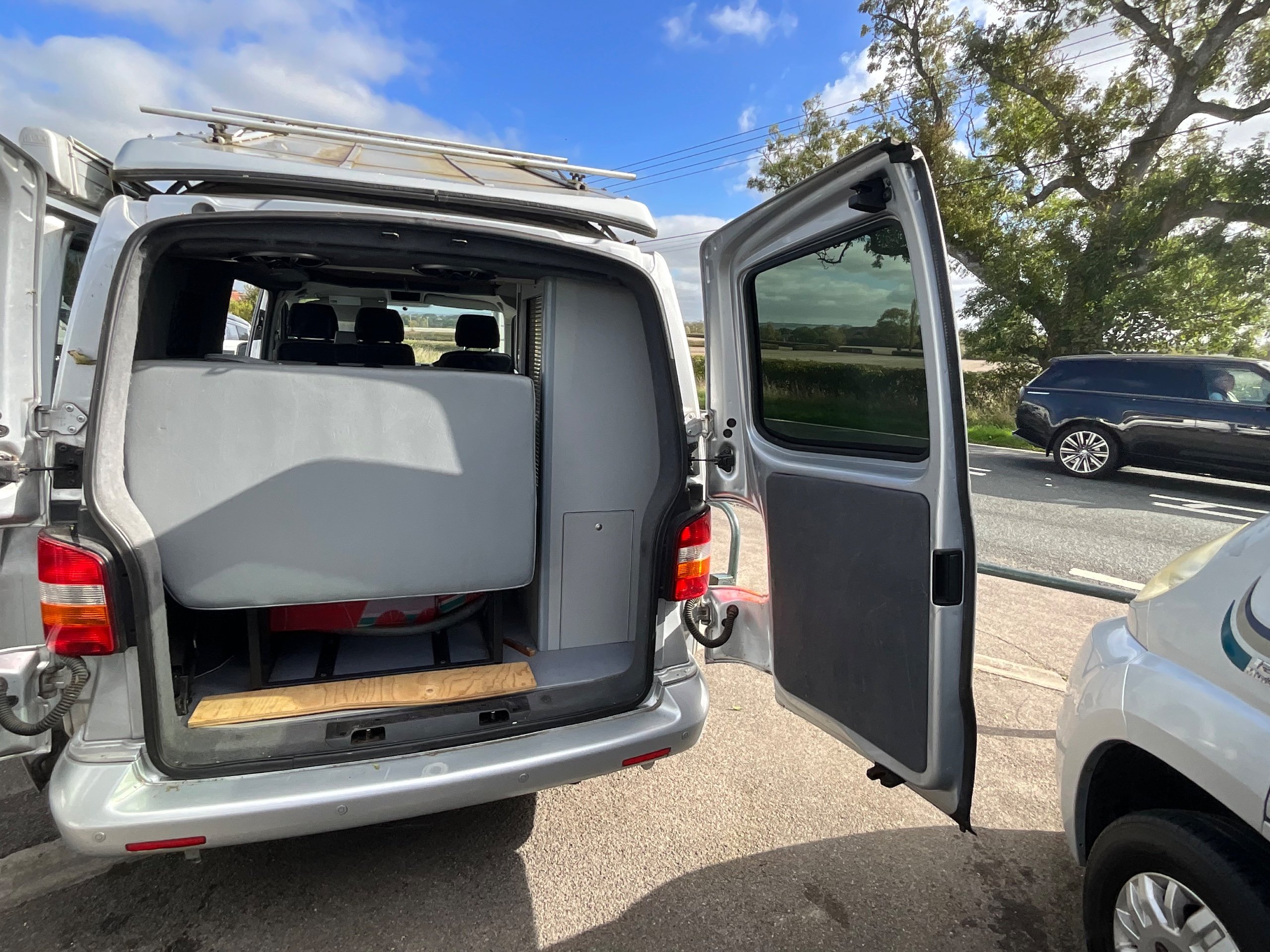 2007 VW campervan offers everything from comfort, practicality. It has been fully converted with grey interior fabric, grey units, fabric lined walls with grey non slip flooring. There is also interior light fittings. The VW has been fitted with a hi-lo roof with a coloured canvas and struts, three windows with insect proof netting for the sides and clear fabric at the front. This van is registered as a 5-seater and sleeps 4.