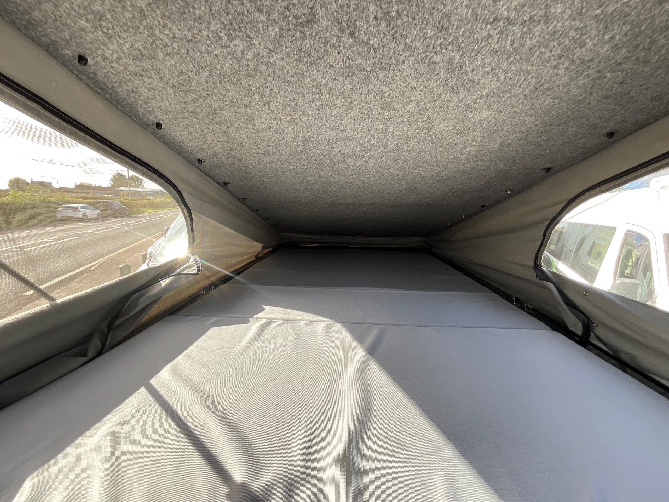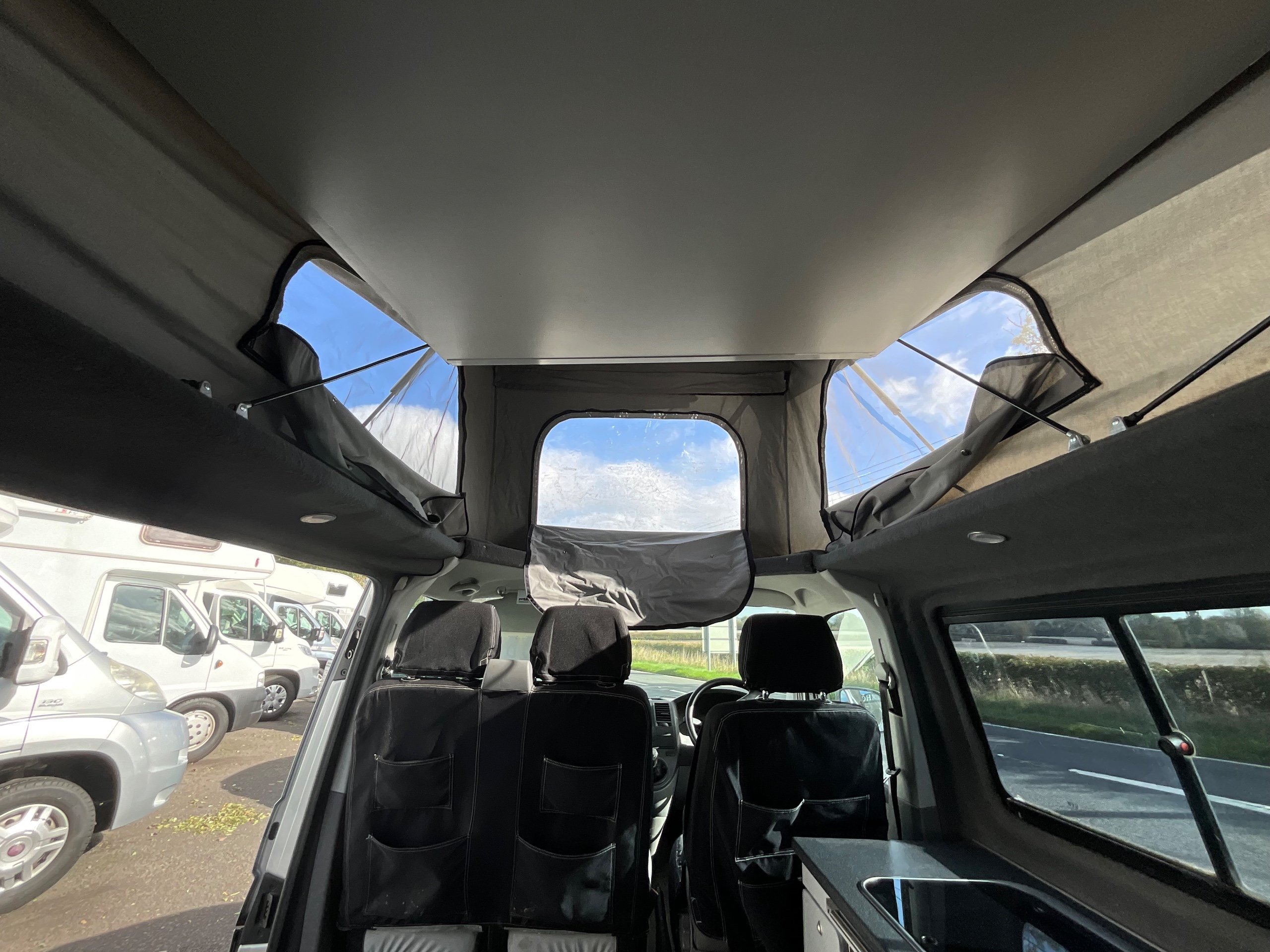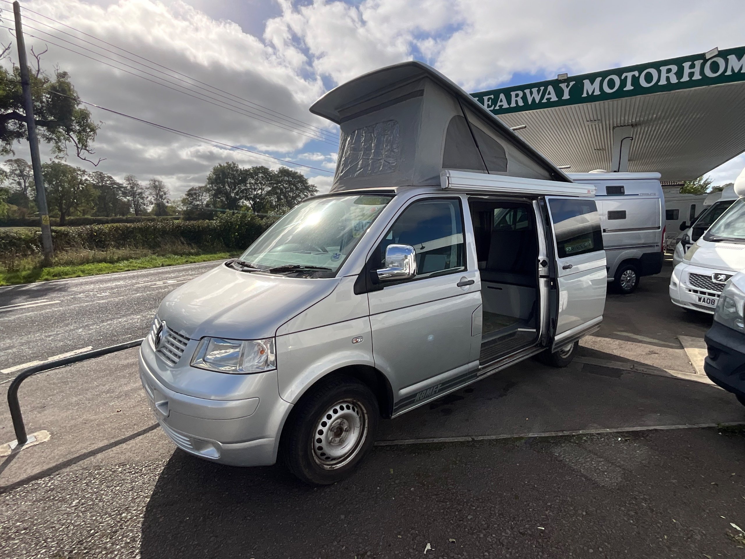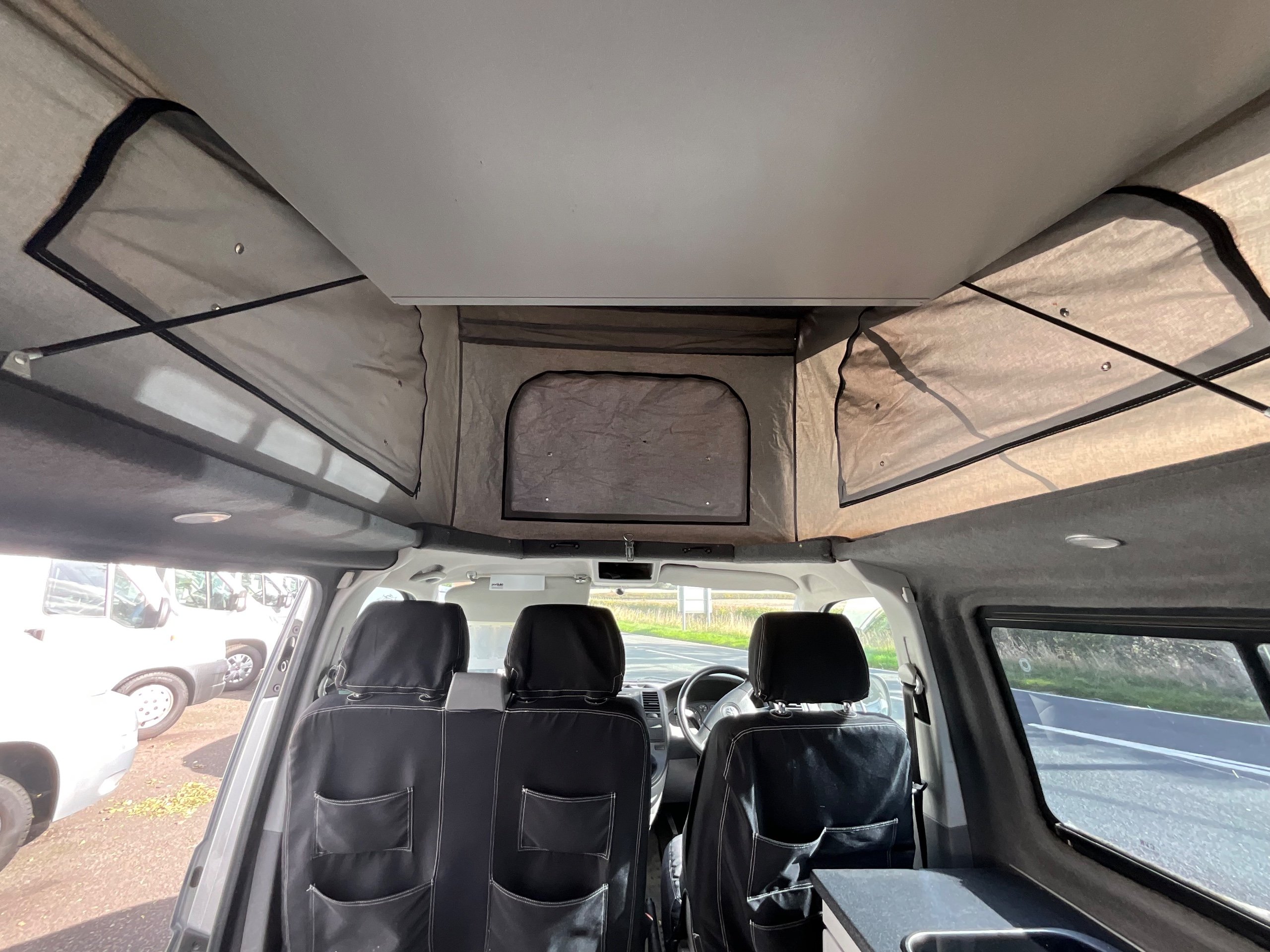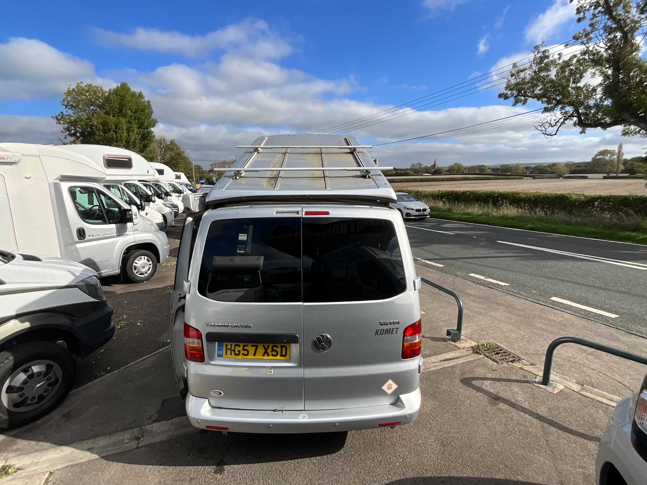 2007 VW campervan offers everything from comfort, practicality. It has been fully converted with grey interior fabric, grey units, fabric lined walls with grey non slip flooring. There is also interior light fittings. The VW has been fitted with a hi-lo roof with a coloured canvas and struts, three windows with insect proof netting for the sides and clear fabric at the front. This van is registered as a 5-seater and sleeps 4.