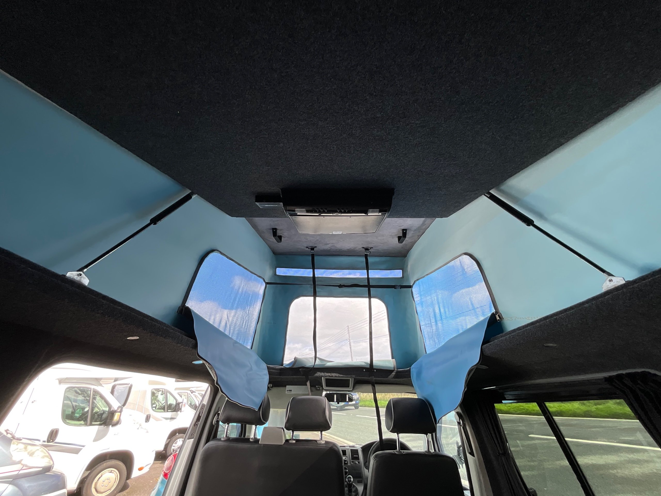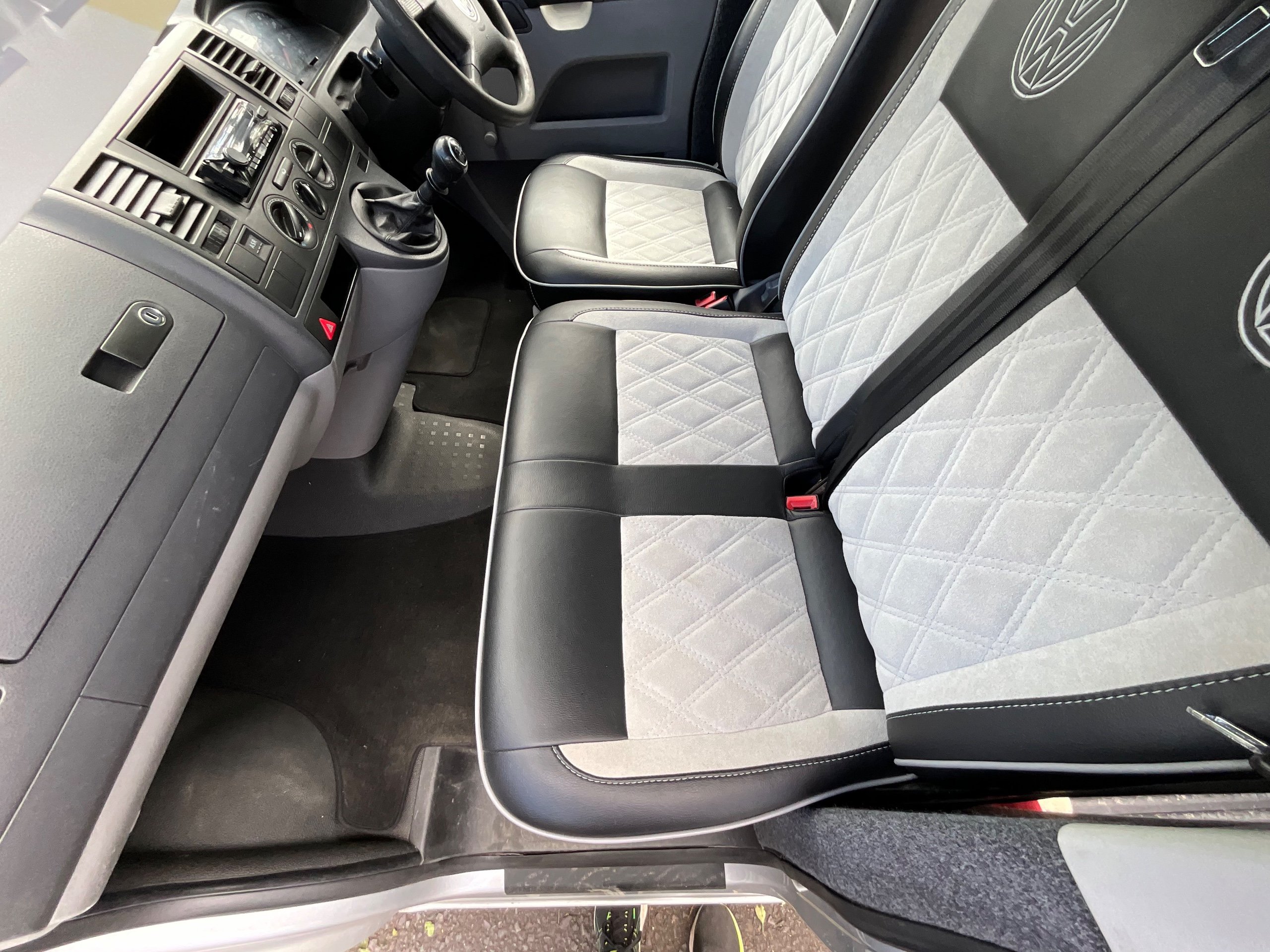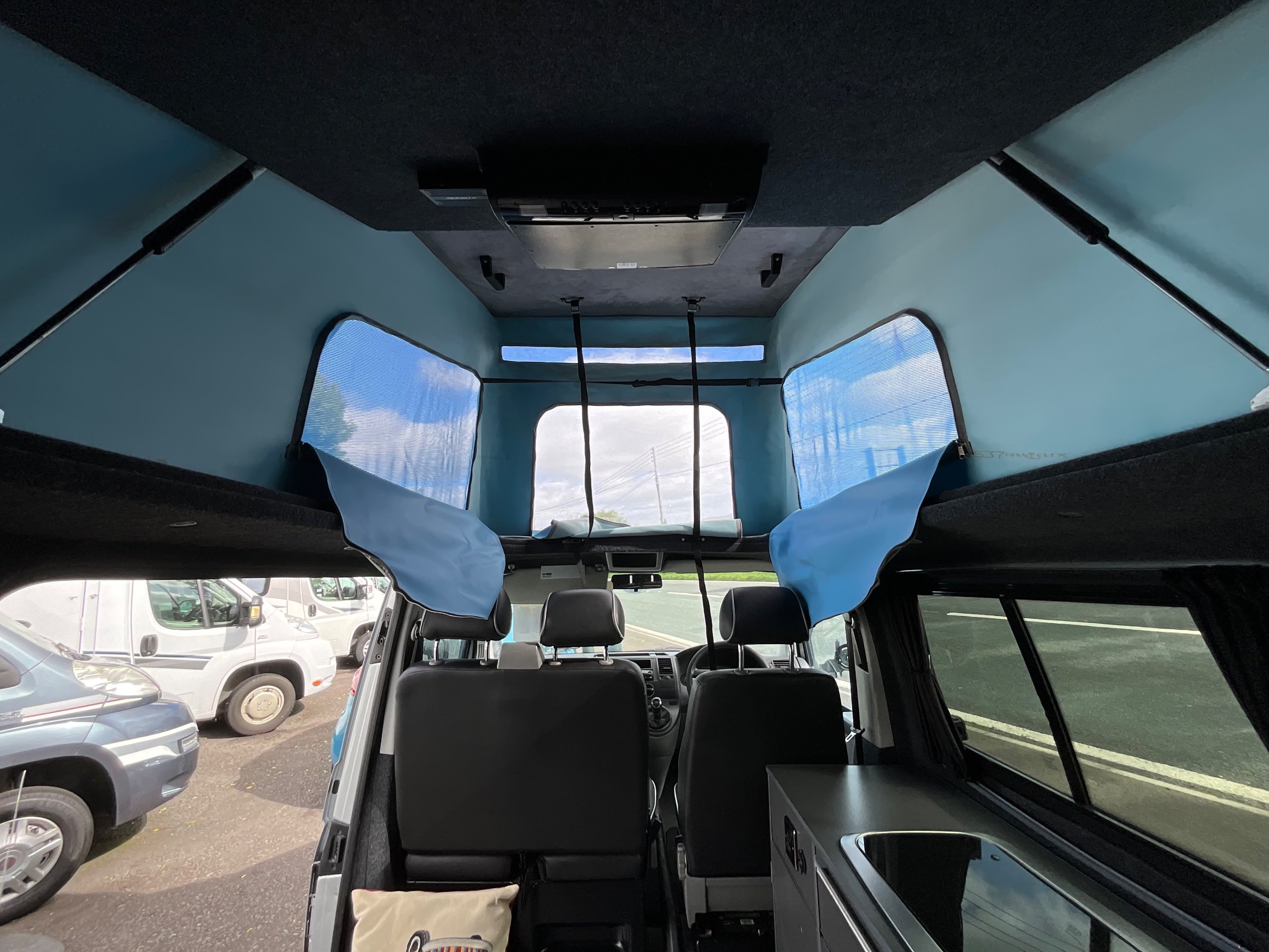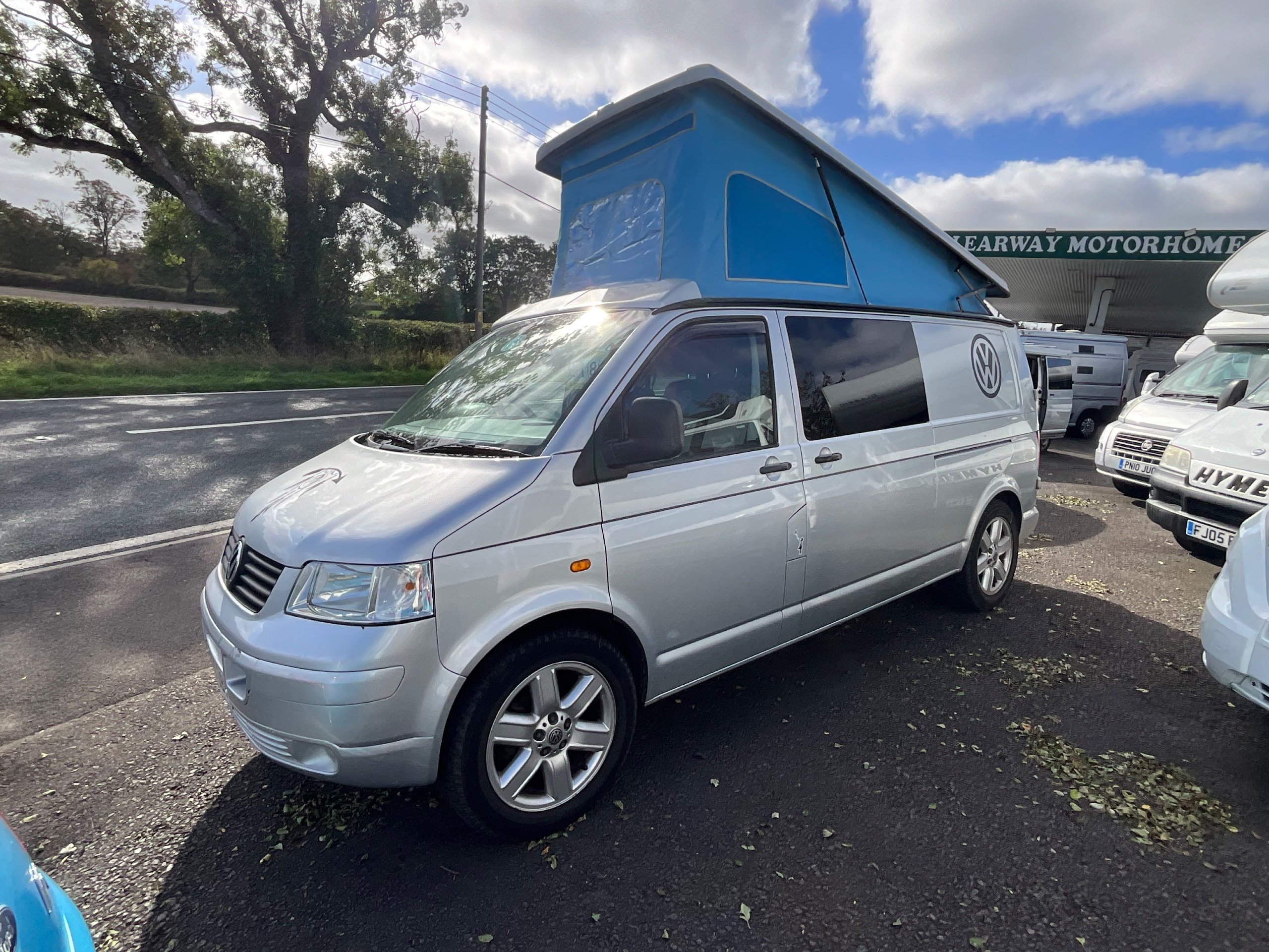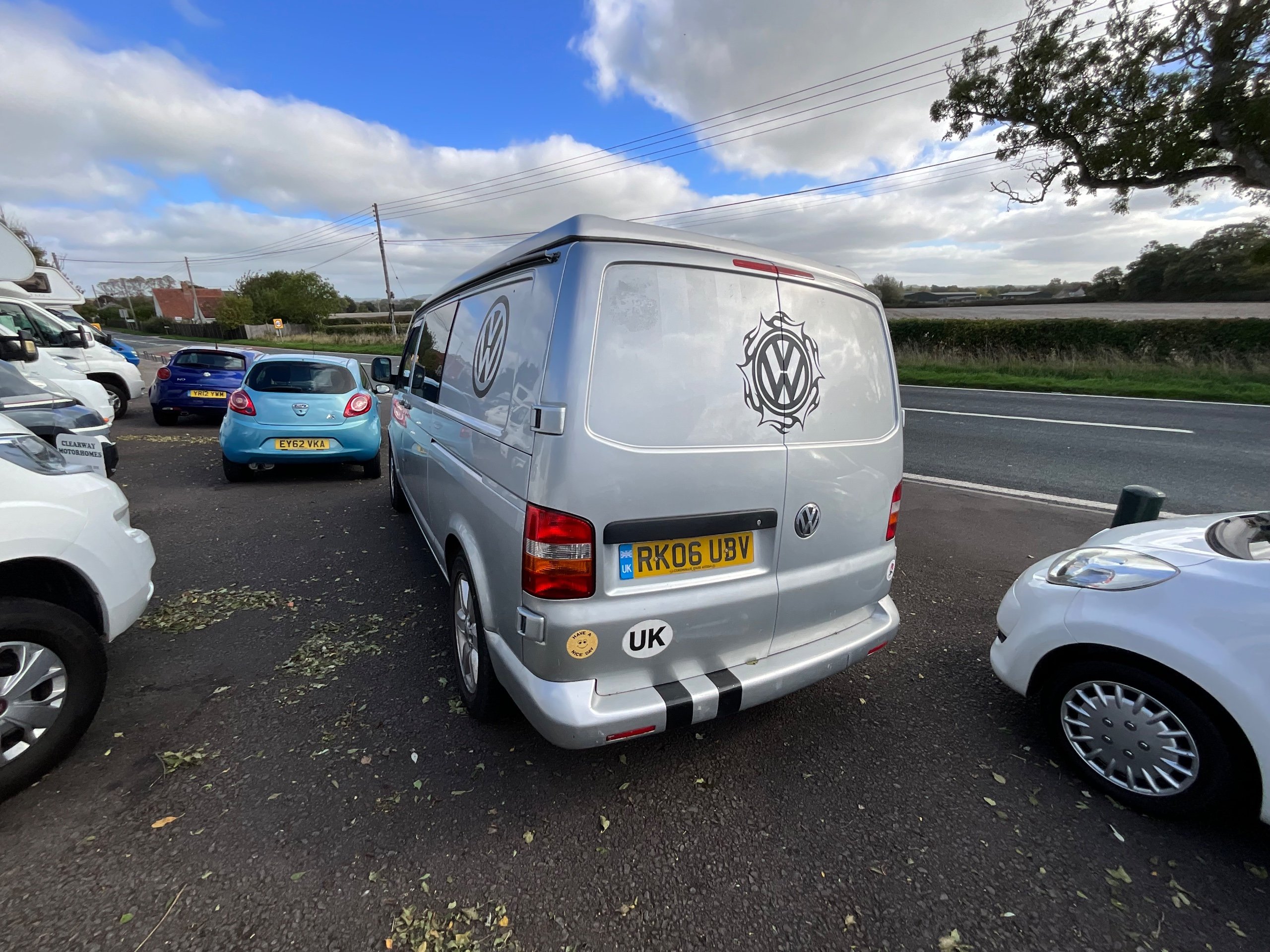 2007 VW campervan offers everything from comfort, practicality. It has been fully converted with black interior fabric, grey units, fabric lined walls with grey non slip flooring. There is also interior light fittings. The VW has been fitted with a hi-lo roof with a coloured canvas and struts, three windows with insect proof netting for the sides and clear fabric at the front. This van is registered as a 5-seater and sleeps 4.