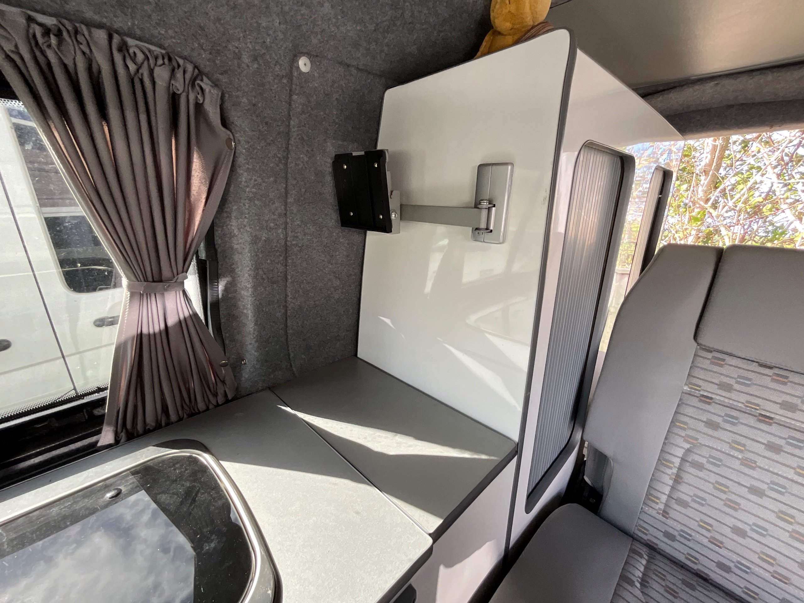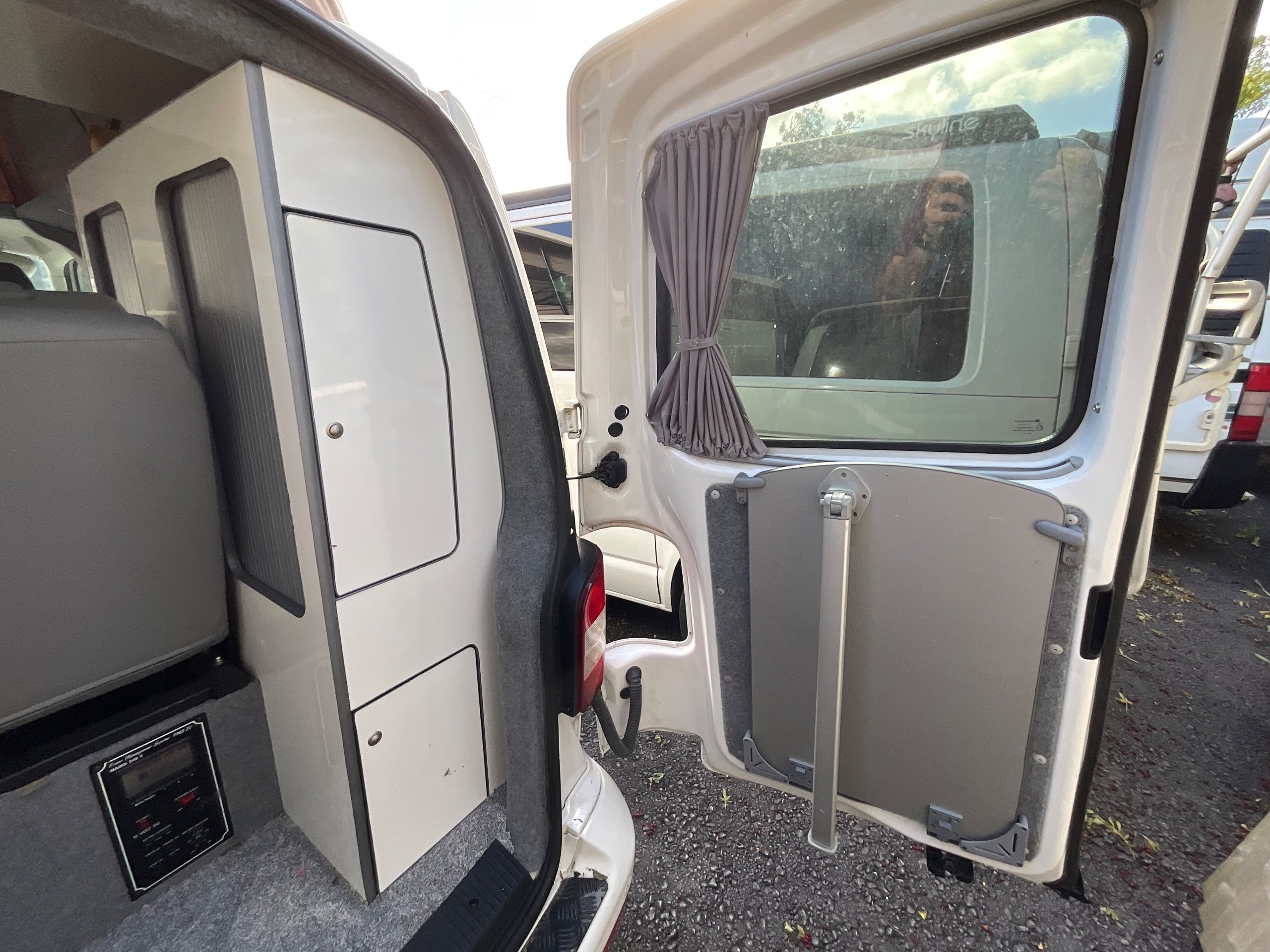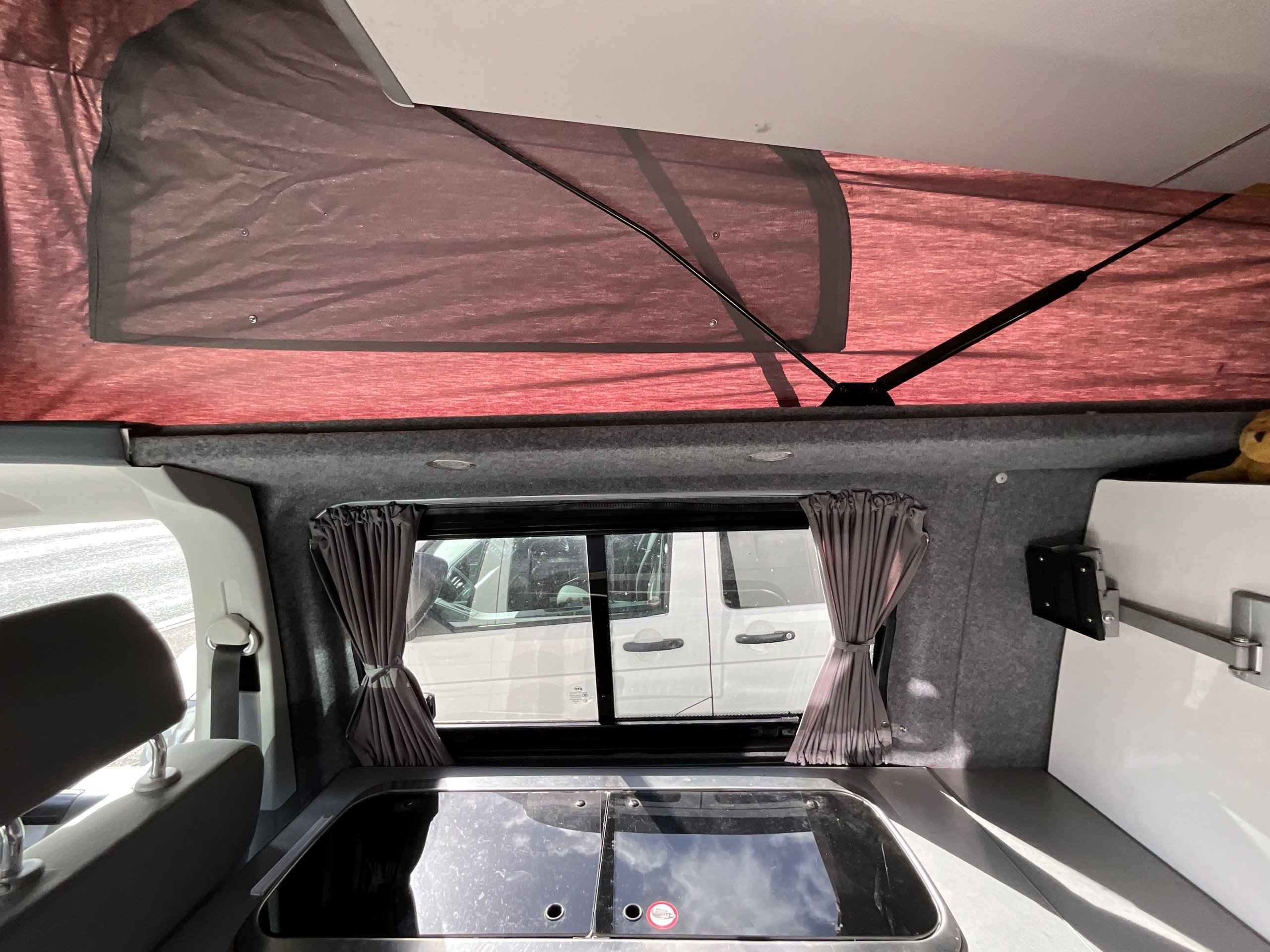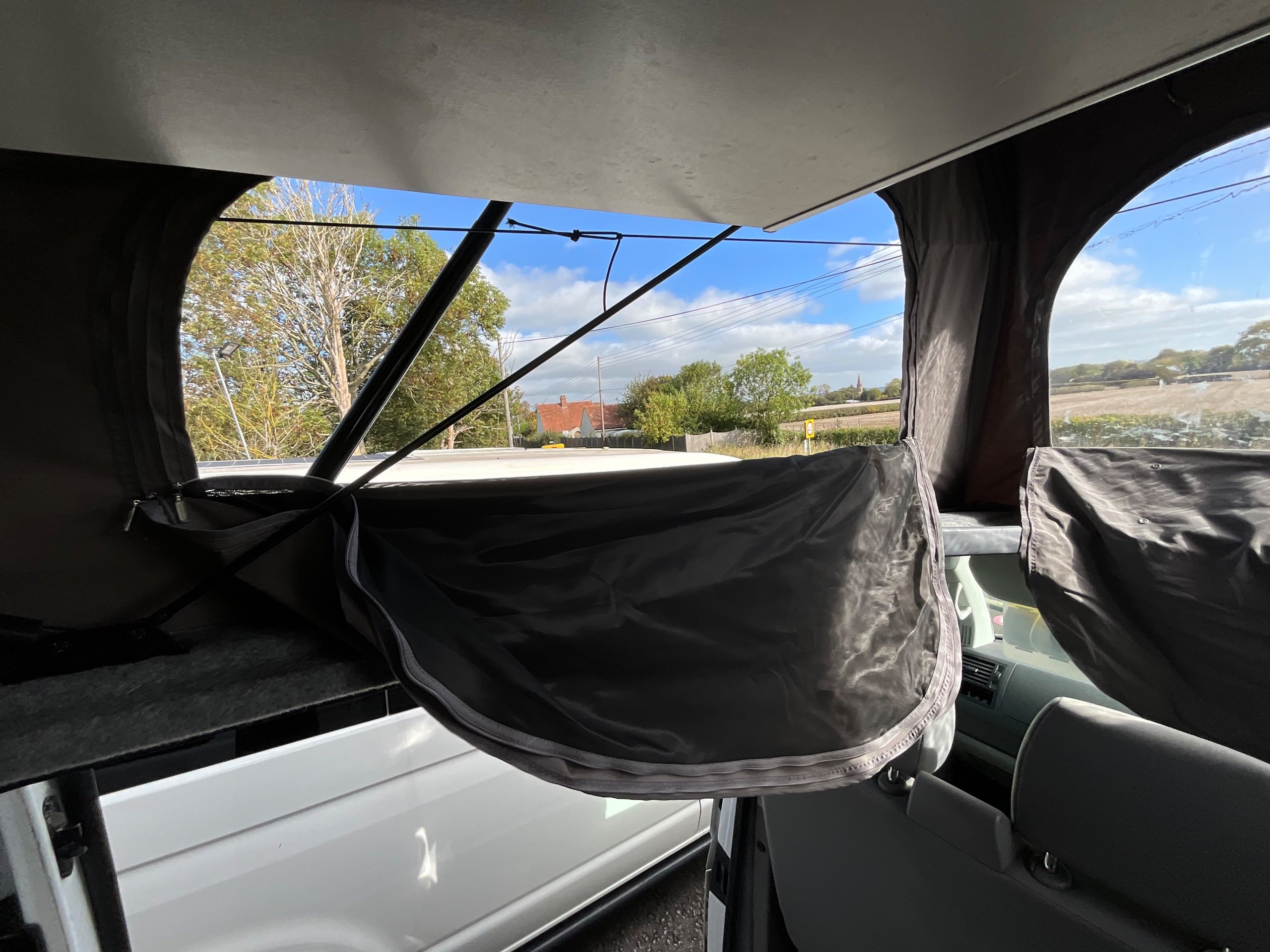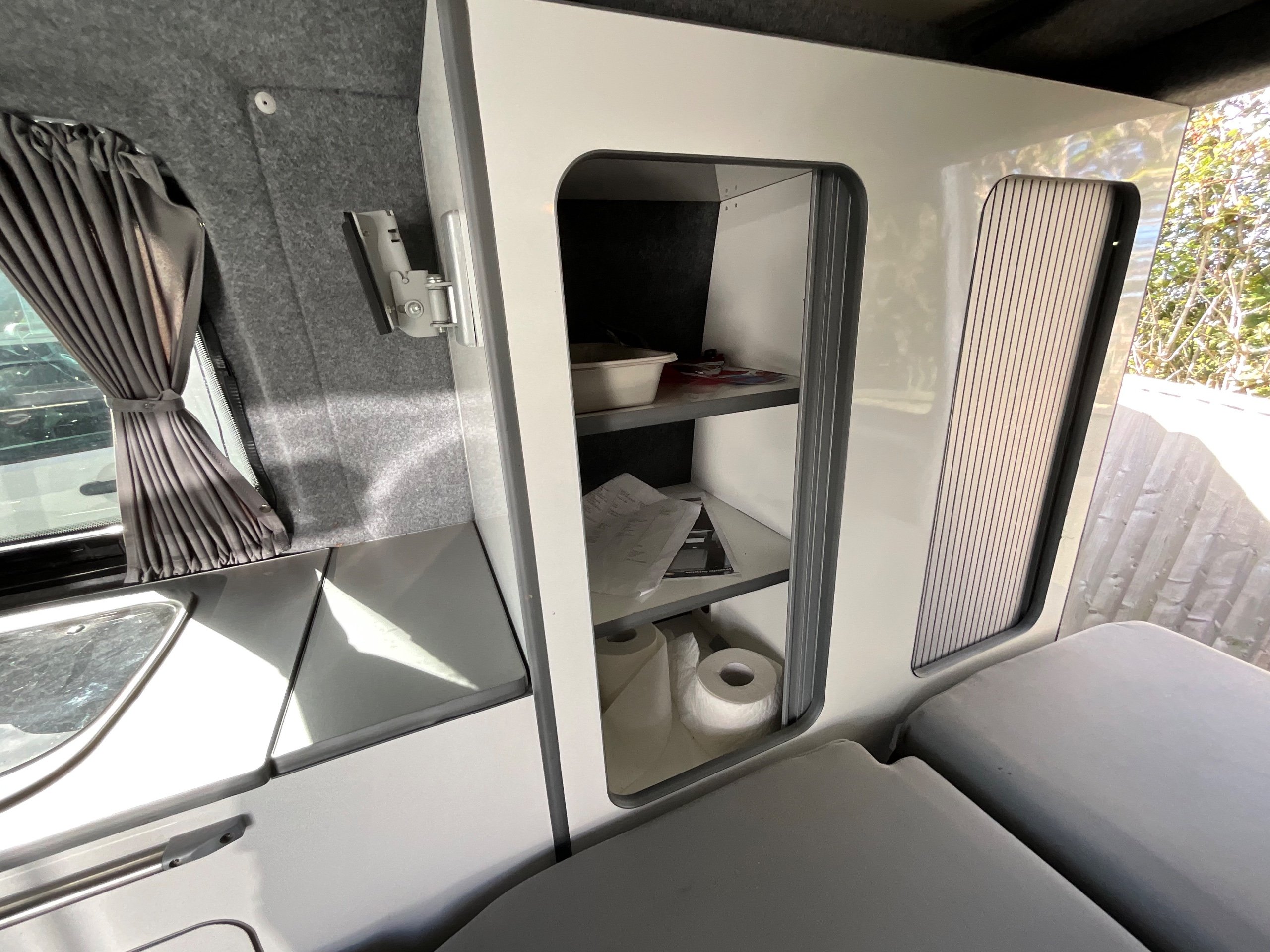 2014 VW campervan offers everything from comfort, practicality, Built in Radio with Bluetooth shows its quality. It has been fully converted with grey interior fabric, white units, fabric lined walls with grey non slip flooring. There is also interior light fittings. The VW has been fitted with a hi-lo Remio roof with a coloured canvas and struts, three windows with insect proof netting for the sides and clear fabric at the front. This van is registered as a 5-seater and sleeps 4.