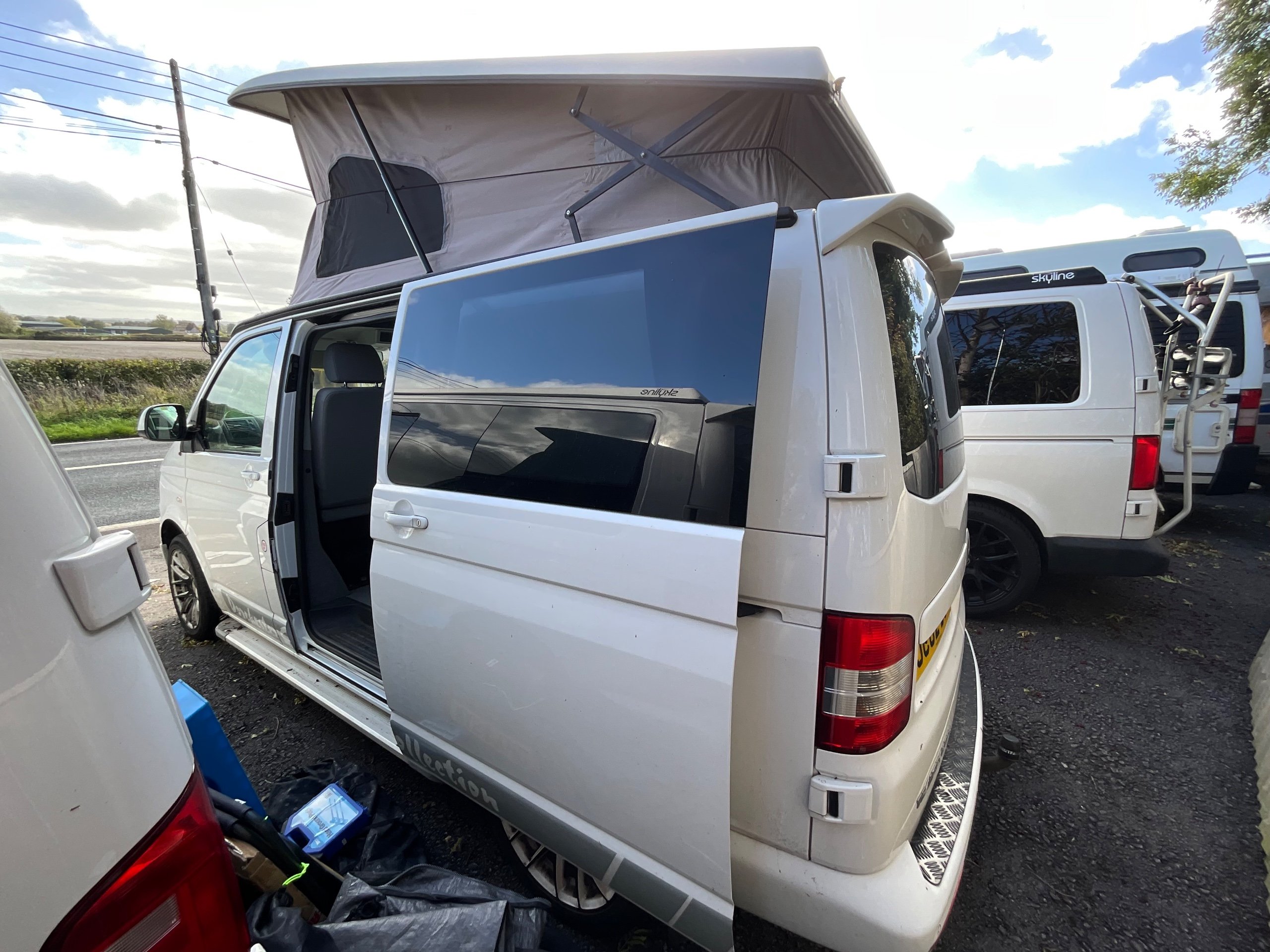 The extras on this van do make it stand out such as a tow bar with electrics, Bluetooth connection for phone, reversing sensors, cab-air conditioning, central locking as well as a drive away awning, porta potti, toilet tent and various other extras to name a few show this is a well loved and maintained VW fully loaded with extras.