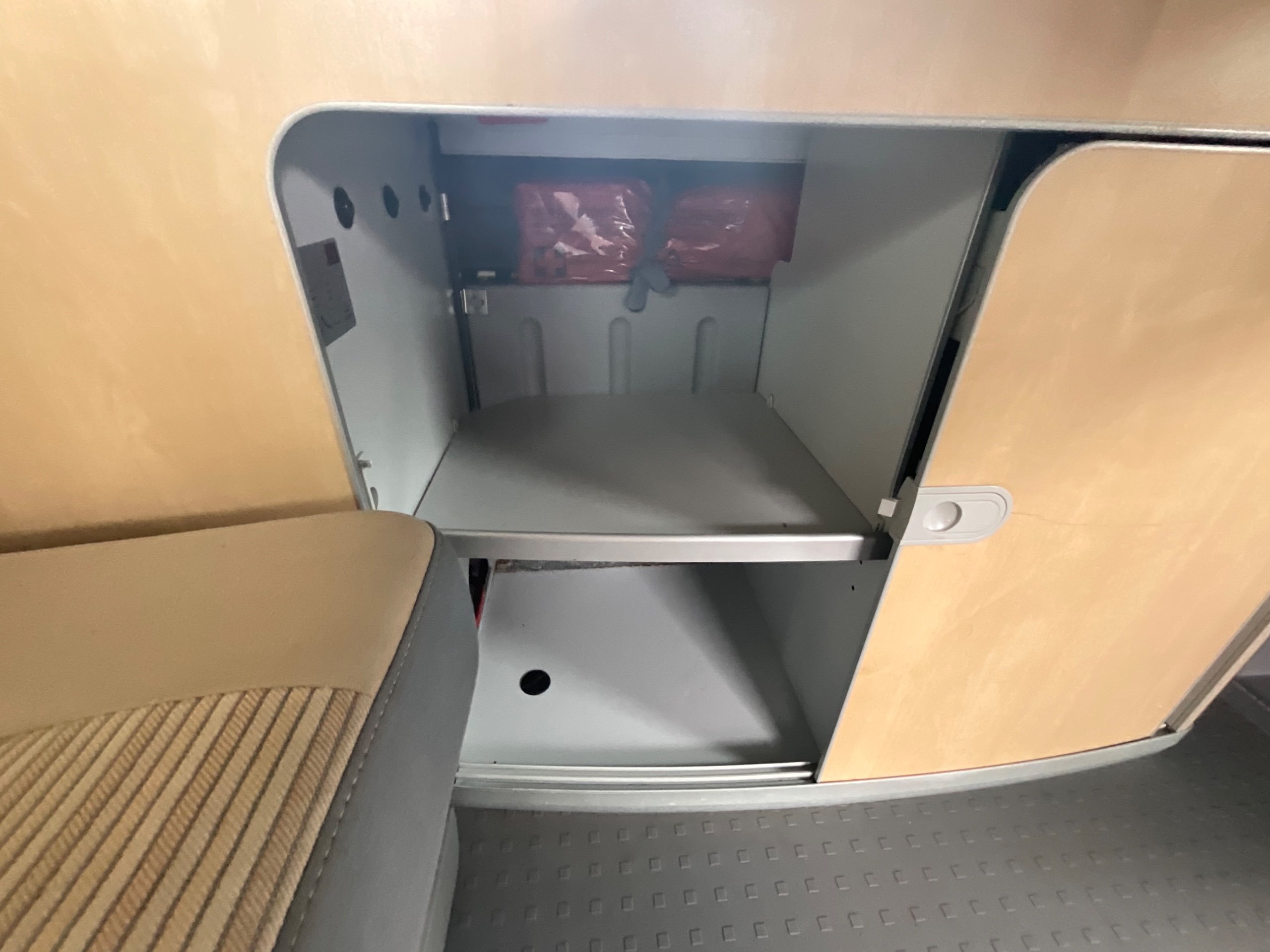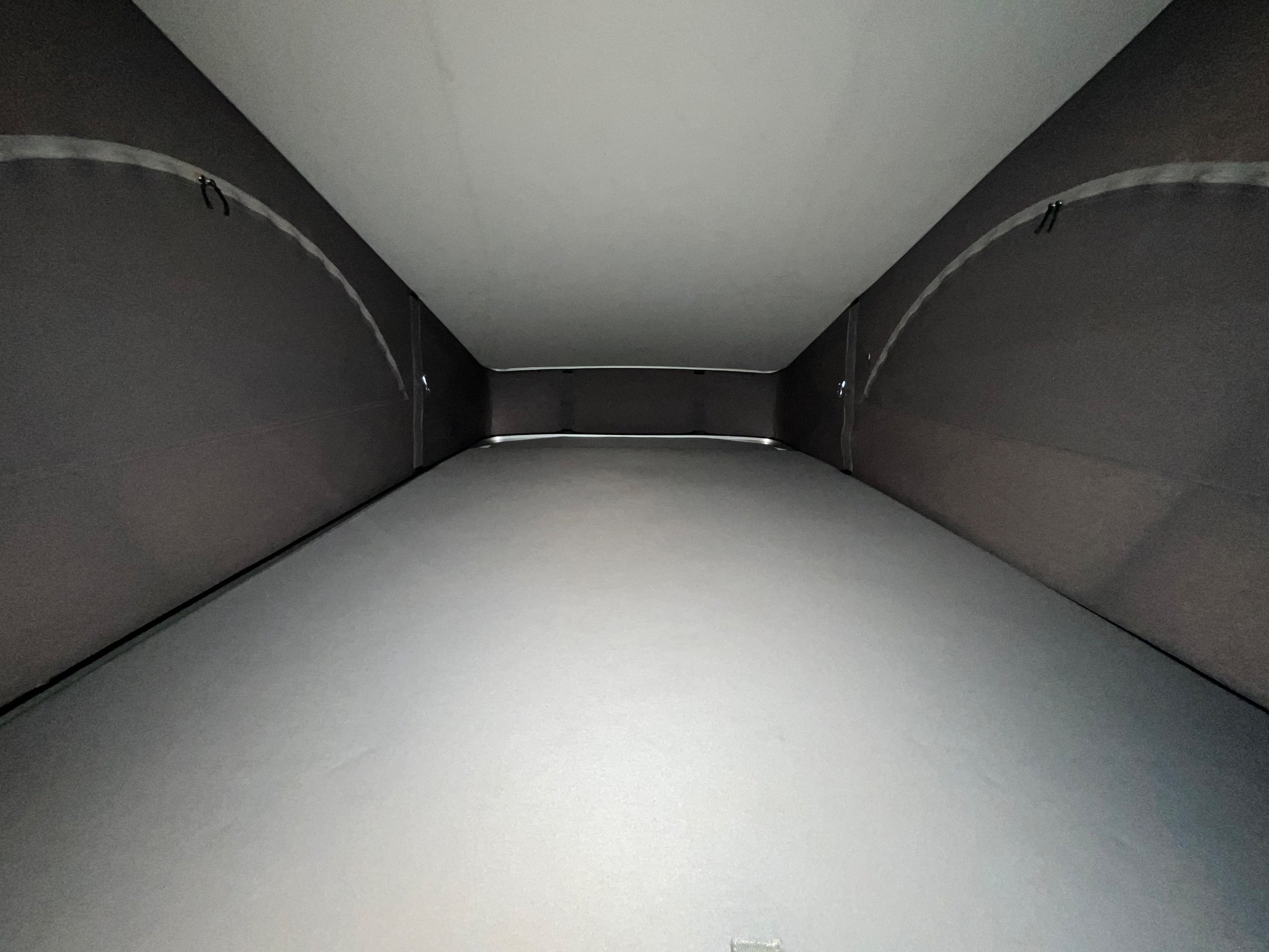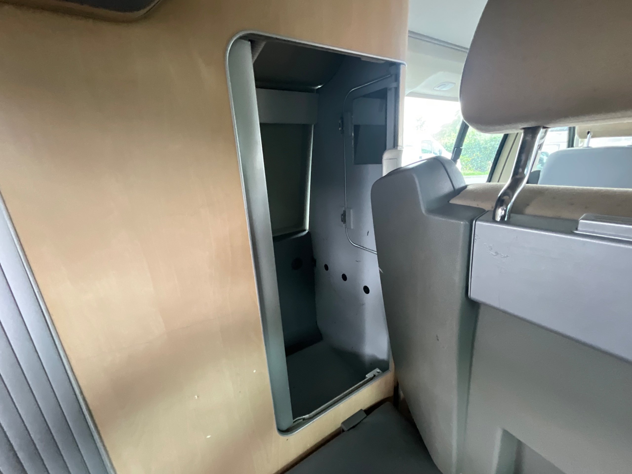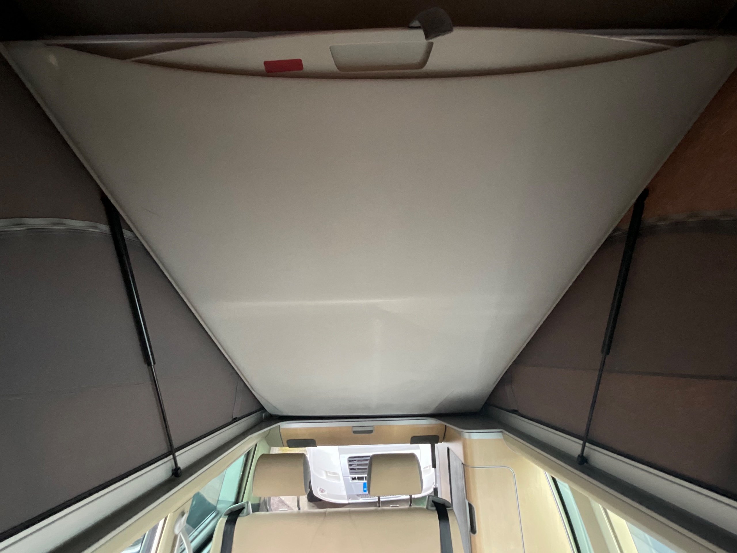 The seats in the back are created out of the crash tested and approved fold out bed (forming a spacious doubled bed) to have the classic VW layout inside, while still having the all the standard comforts as well as belted seats, an added benefit of this bench seat is the capability to slide forwards and backs enhancing the living space or rear space while driving or parked up. There is also the added benefit of both front seats working on a swivel mechanisms to enhance the living area when parked up and make it easier to climb to the bed in the roof.